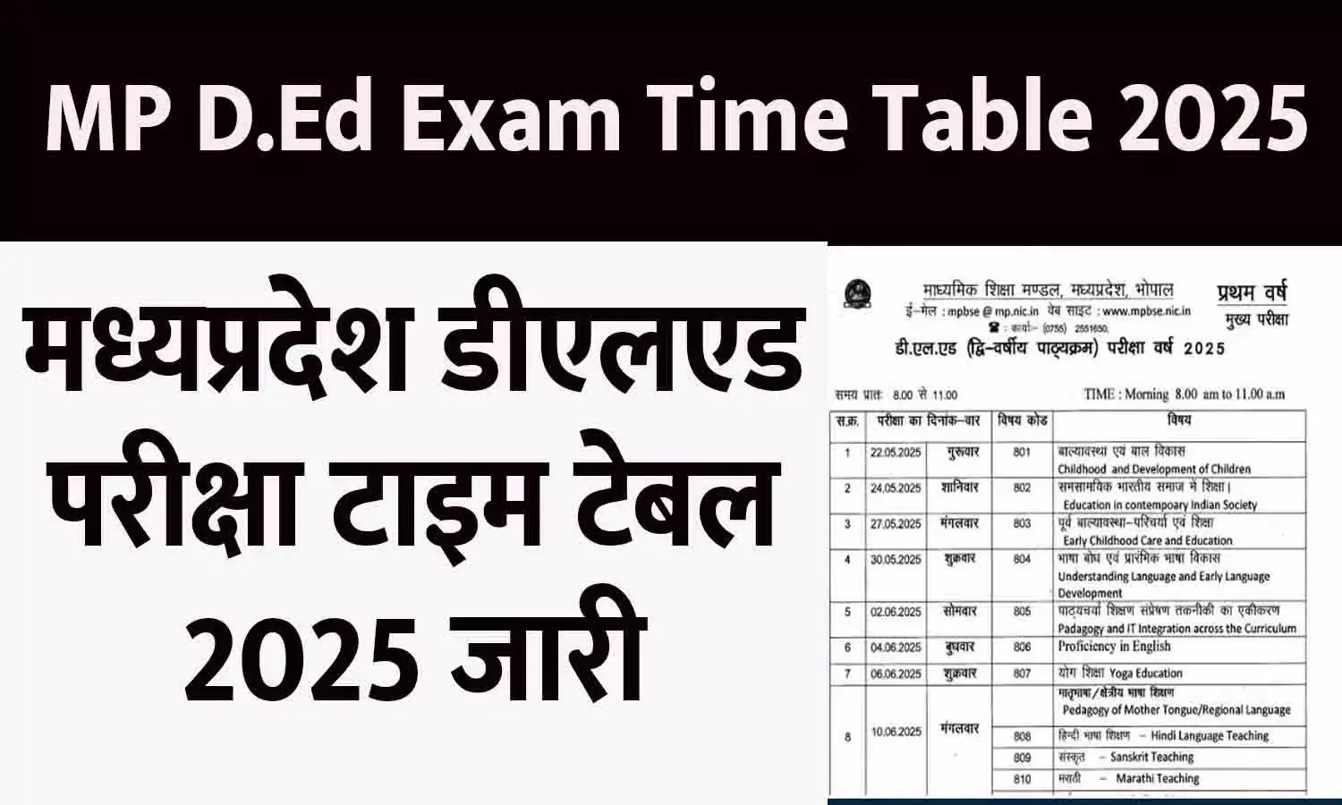 मध्यप्रदेश डीएलएड परीक्षा टाइम टेबल 2025 जारी: MP D.Ed Exam Time Table 2025, MP DELED Time Table