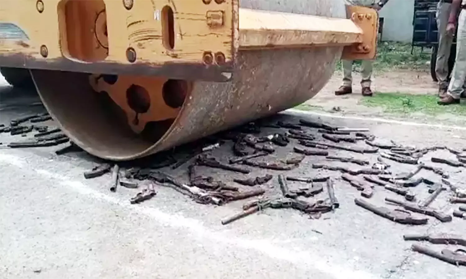 एमपी के दतिया में जब्त अवैध हथियारों पर चला बुलडोजर, किया गया नष्ट