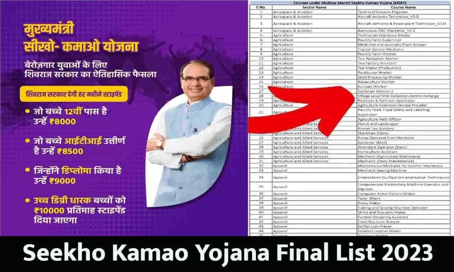 Seekho Kamao Yojana New List 2023 | Seekho Kamao Yojana Final List 2023 | Seekho Kamao Yojana List: मध्यप्रदेश के बेरोजगार युवाओ के लिए मुख्यमंत्री शिवराज सिंह चौहान द्वारा सीखो कमाओ योजना (Seekho Kamao Yojana In MP) की शुरुआत की गई है. इस योजना का लाभ केवल प्रदेश के युवा वर्ग को ही मिलेगा. यदि आपने भी सीखो कमाओ योजना में अप्लाई किया है तो आपके लिए खुशखबरी है. लम्बे समय से सीखो कमाओ योजना में फॉर्म भरने वाले युवाओ के द्वारा Seekho Kamao Yojana List Kab Aayegi सर्च किया जाता है. लम्बे समय के बाद युवाओ के इंतज़ार की घड़िया समाप्त हो चुकी है क्योंकि Seekho Kamao Yojana List को जारी कर दिया गया है....