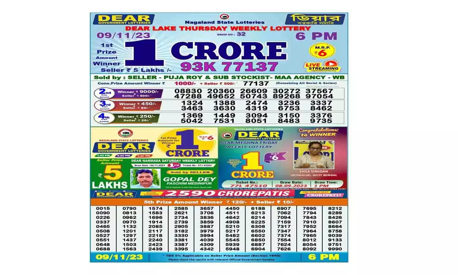 Nagaland Lottery Result 6 PM And Winner List 09-11-2023 To DECLARE LIVE Updates: 1 करोड़ रुपये के लकी ड्रा की पूरी सूची यहां देखें