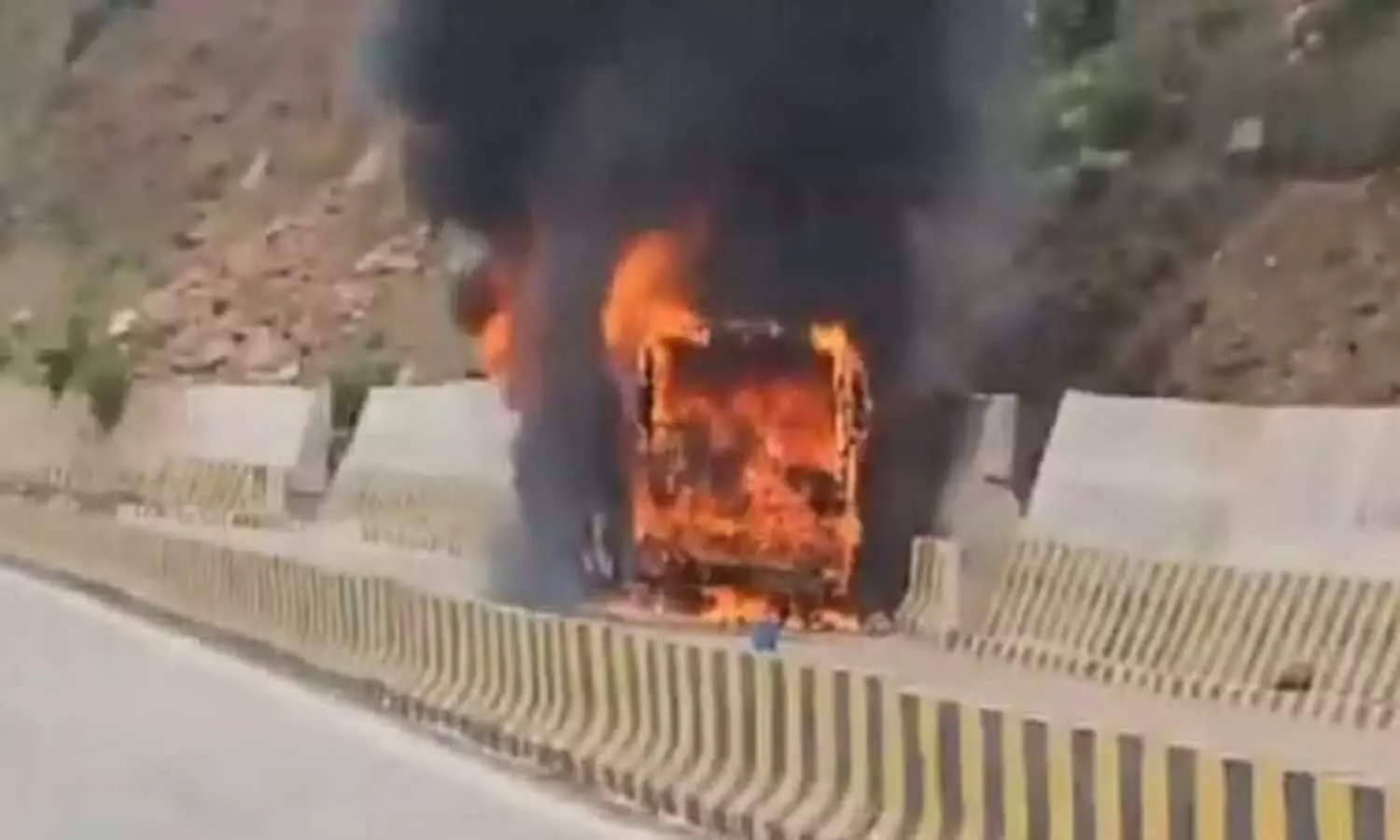 एमपी सीधी के श्रद्धालुओं ने कूदकर बचाई जान, चलती बस धू-धूकर जलने लगी
