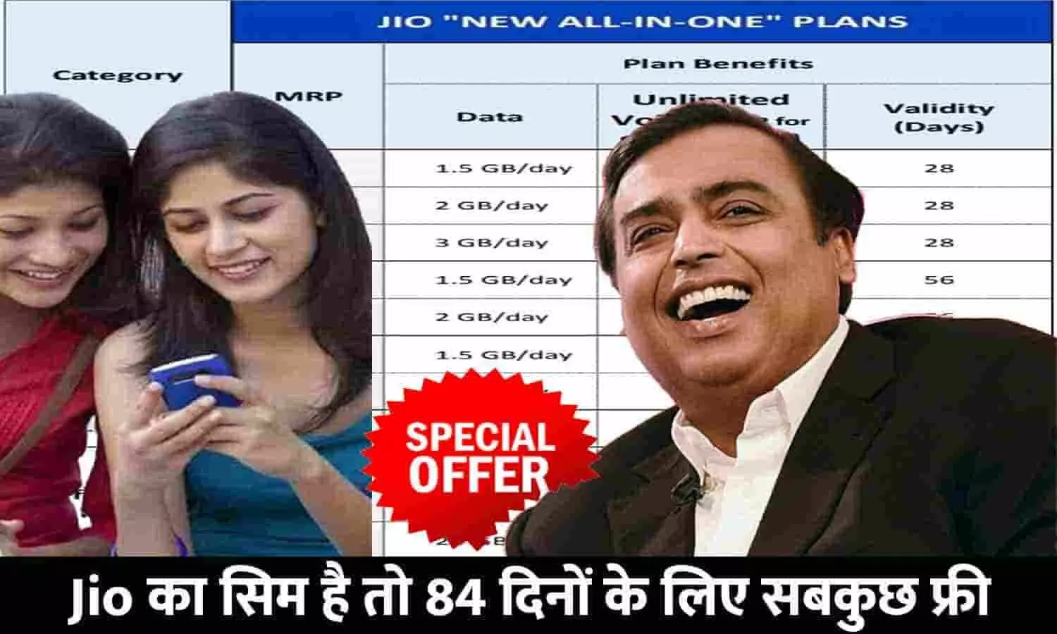 Jio 3 Month Free Recharge 2023 | Jio सिम है तो 2016 के बाद 84 दिन के लिए मुफ्त कॉलिंग, डेटा और भी बहुत कुछ