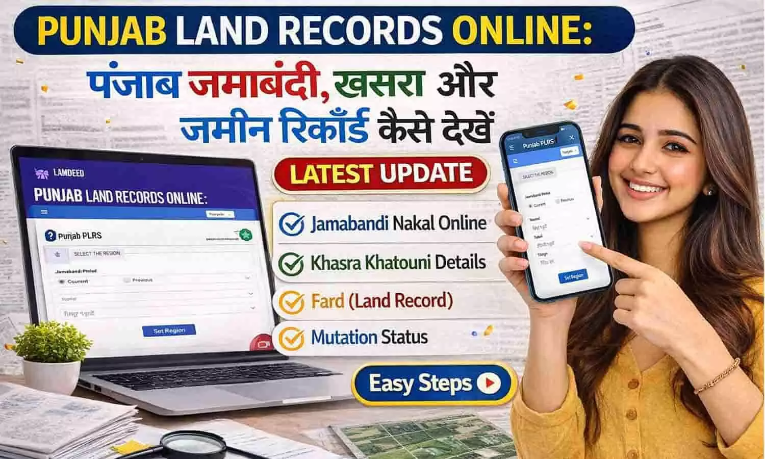 Punjab Land Records Online Kaise Dekhe, Jamabandi Punjab, Khasra Number, Bhu Naksha और जमीन मालिक की जानकारी घर बैठे ऑनलाइन चेक करने की पूरी जानकारी।