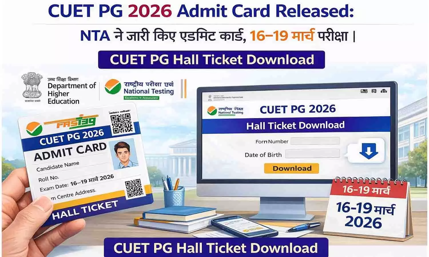 CUET PG 2026 Admit Card Released: NTA ने जारी किए एडमिट कार्ड, 16–19 मार्च परीक्षा | CUET PG Hall Ticket Download