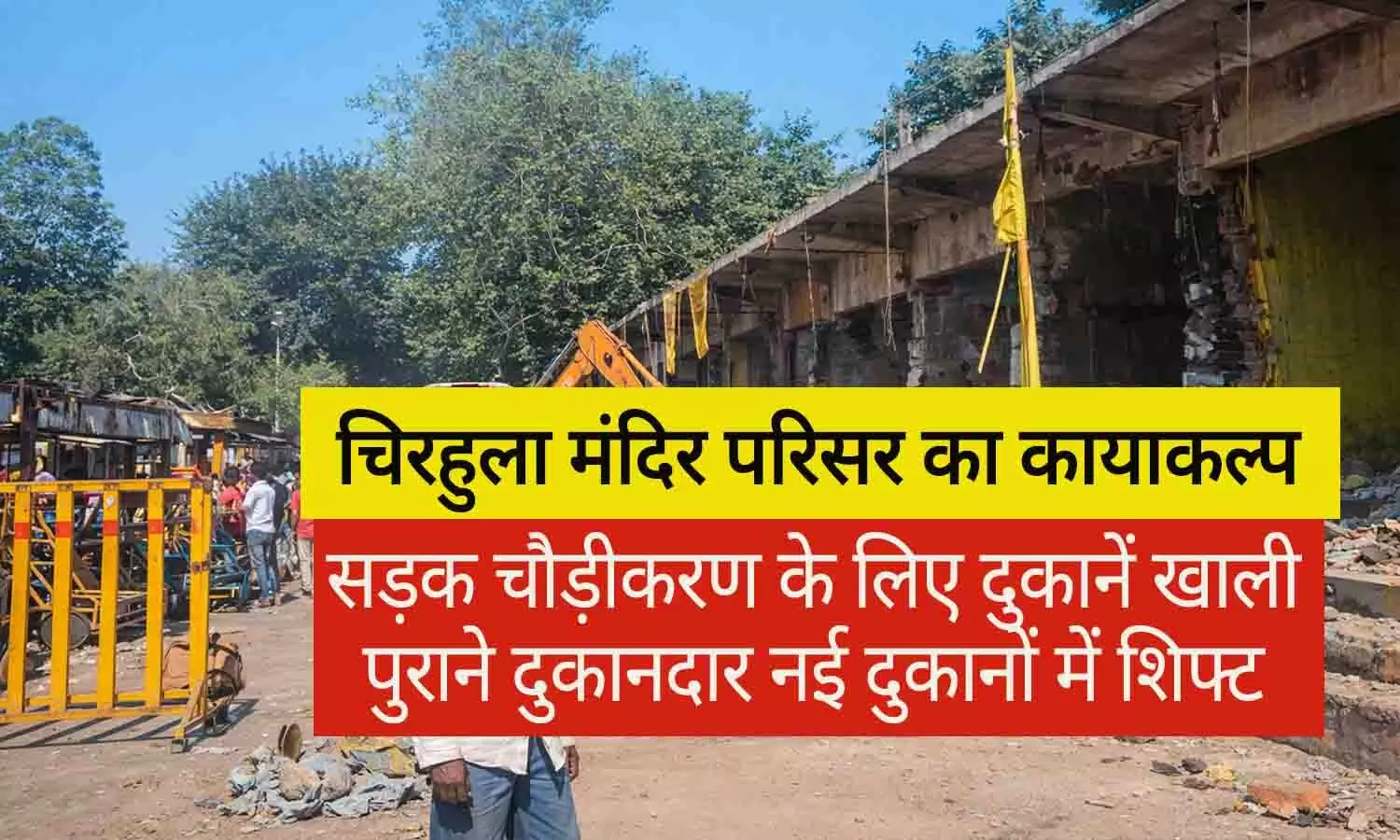 चिरहुला मंदिर परिसर का कायाकल्प: सड़क चौड़ीकरण के लिए दुकानें खाली, पुराने दुकानदार नई दुकानों में शिफ्ट