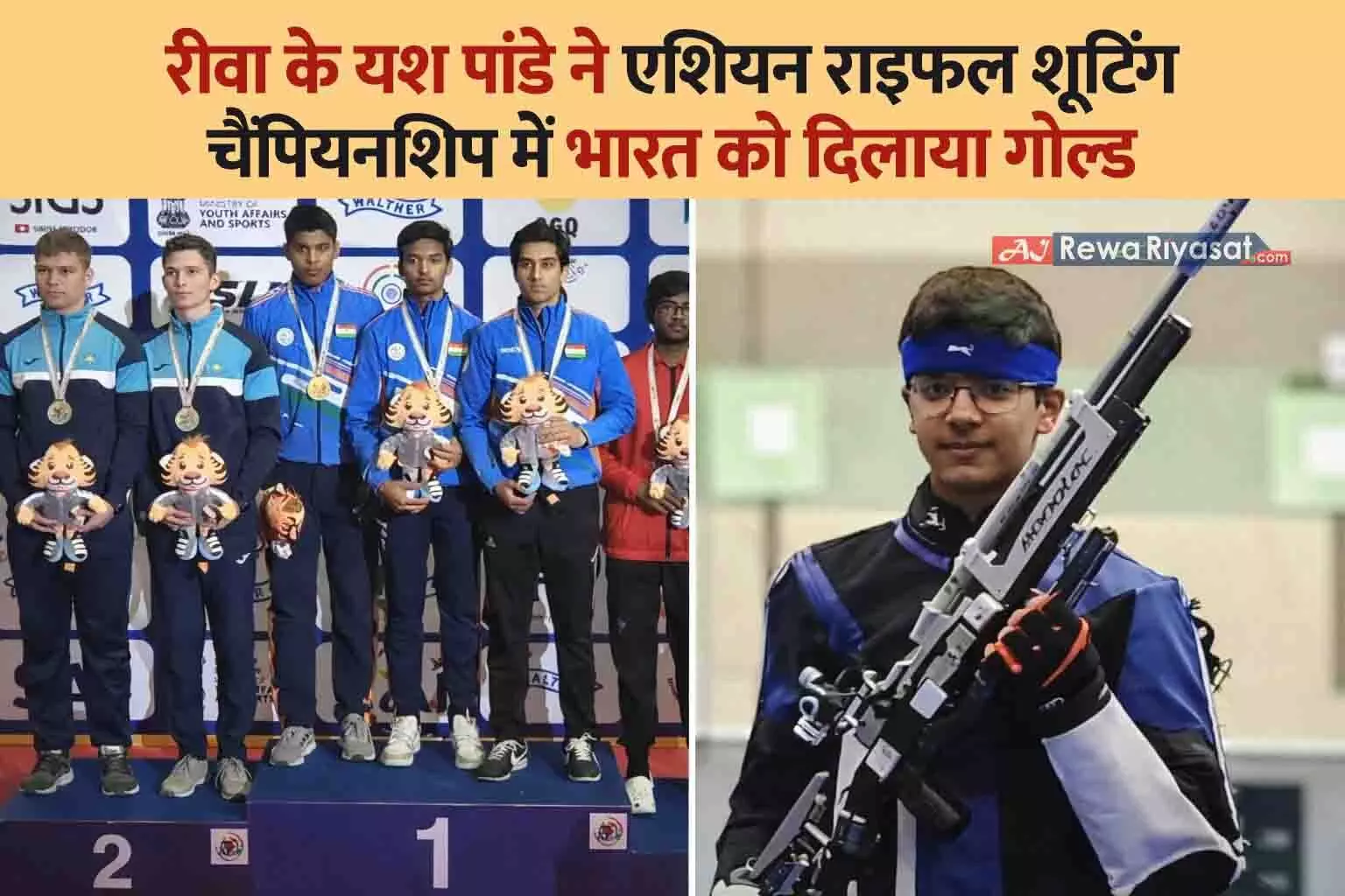 एशियन राइफल शूटिंग चैंपियनशिप 2026 में रीवा के यश पांडे ने 10 मीटर एयर राइफल यूथ टीम इवेंट में गोल्ड जीतकर भारत का नाम रोशन किया।