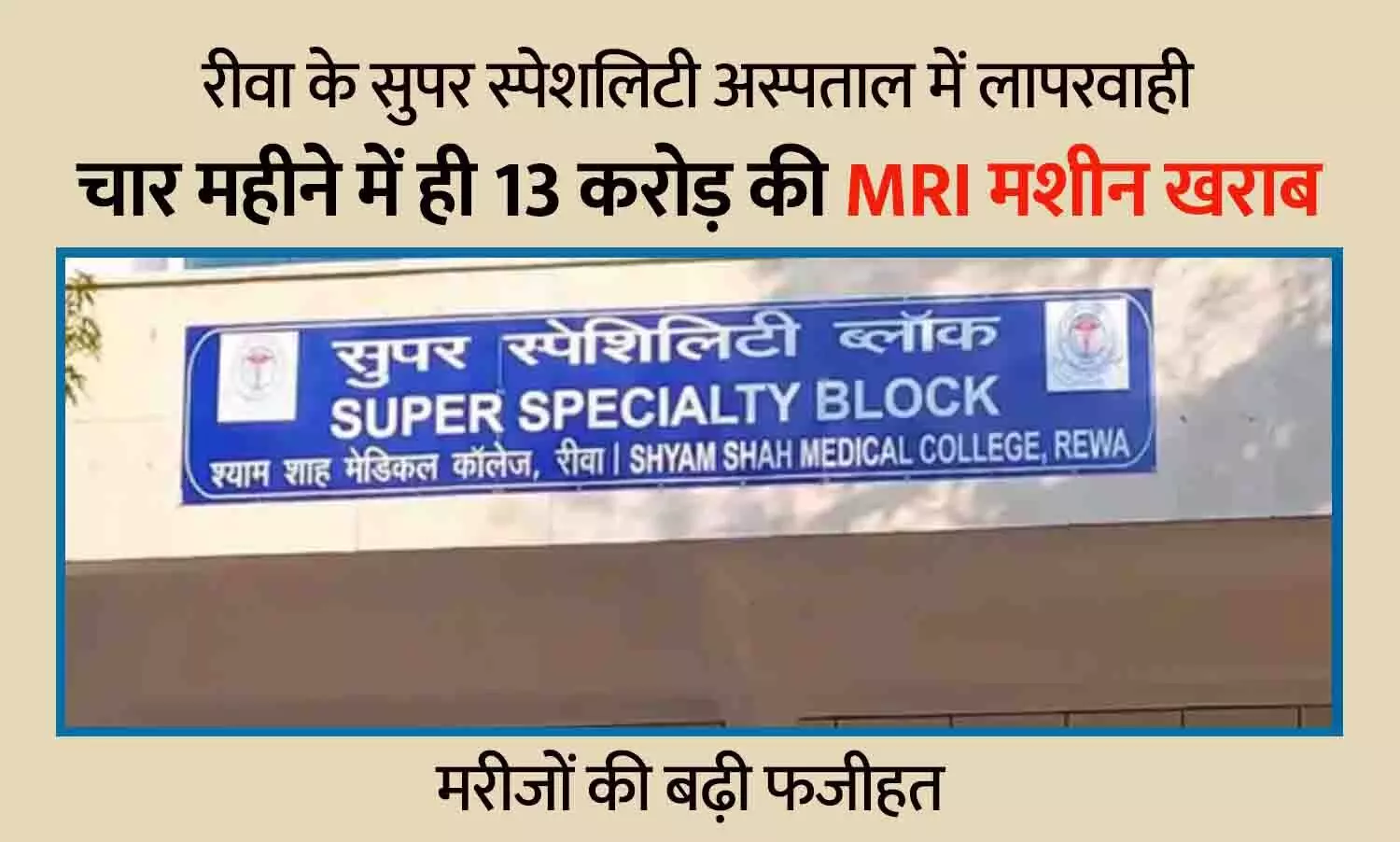 रीवा के सुपर स्पेशलिटी अस्पताल में लापरवाही: चार महीने में ही 13 करोड़ की MRI मशीन खराब, मरीजों की बढ़ी फजीहत