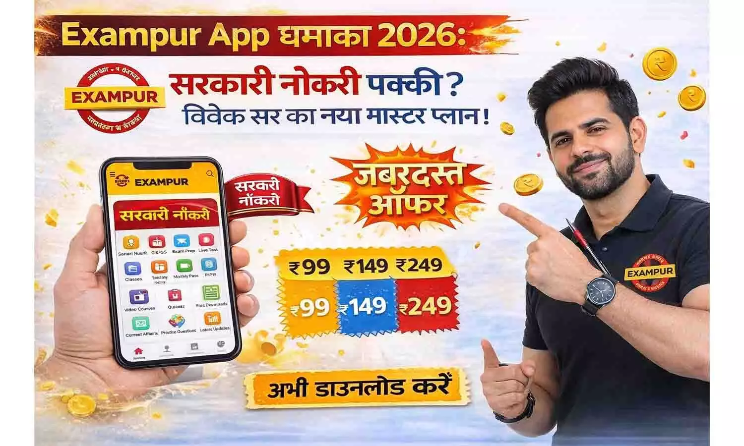 सरकारी नौकरी का सपना देखने वाले करोड़ों छात्रों के लिए Exampur Official App एक भरोसे का नाम बन चुका है। साल 2026 में इस ऐप को नए अवतार में पेश किया गया है, जहाँ तकनीक और शिक्षा का बेजोड़ संगम देखने को मिलता है। चाहे आप गांव में हों या शहर में, यह ऐप आपको भारत की सर्वश्रेष्ठ फैकल्टी से जुड़ने का मौका देता है। इसका उद्देश्य "कलम से क्रांति" के नारे को सार्थक करते हुए हर घर तक सस्ती और गुणवत्तापूर्ण शिक्षा पहुँचाना है।