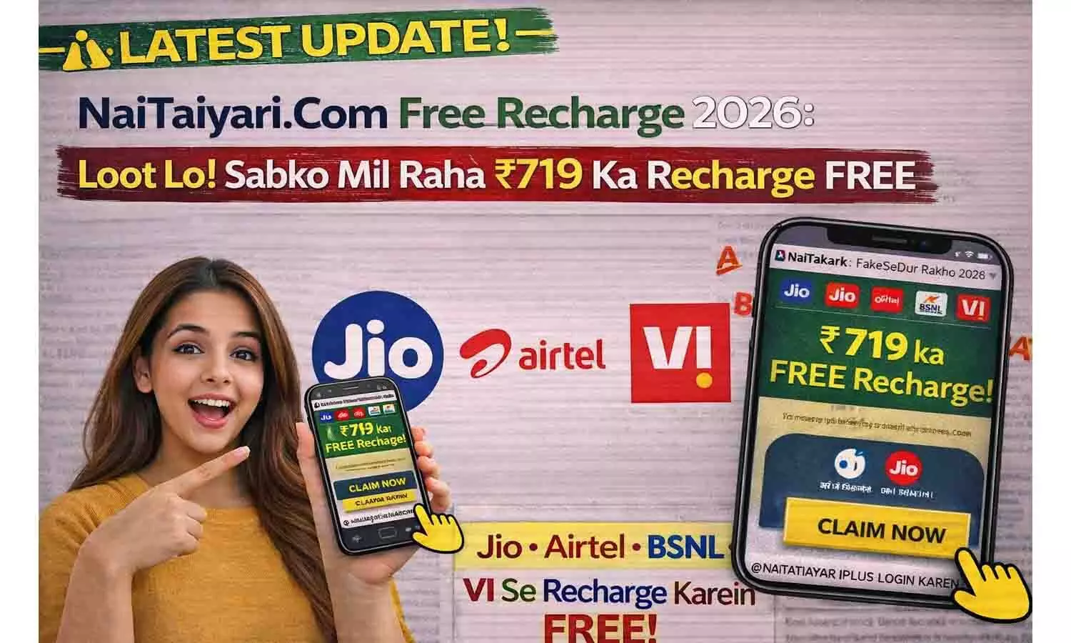 Nai Taiyari.com Free Recharge 2026 की असली सच्चाई क्या है? क्या सच में Jio, Airtel और Vi का रिचार्ज फ्री मिल रहा है? पूरी जानकारी और Direct Link के लिए अभी पढ़ें।