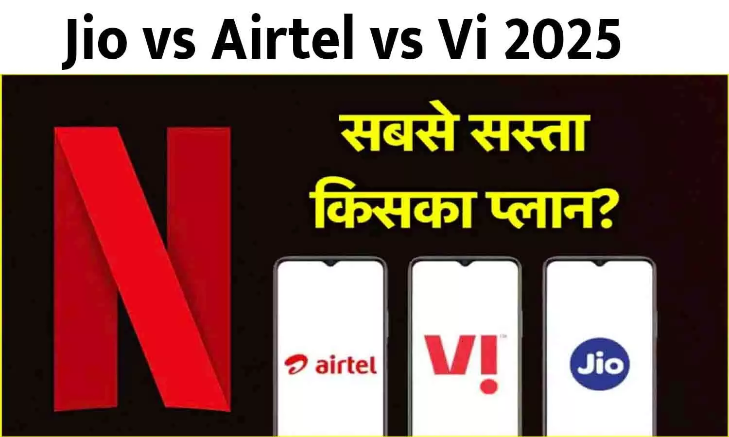Jio vs Airtel vs Vi Recharge Plans, Jio vs Airtel vs Vi Recharge Plans 2025, Jio vs Airtel vs Vi Free Netflix Recharge Plans, Jio vs Airtel vs Vi Free Netflix Recharge Plans 2025, Jio vs Airtel vs Vi Free Netflix Recharge Plans In Hindi, Jio vs Airtel vs Vi Free Netflix Recharge Plans Ki Khabar, Jio vs Airtel vs Vi Free Netflix Recharge Plans Latest Update: भारत में Reliance Jio, Airtel और Vodafone Idea तीन प्रमुख टेलीकॉम कंपनियां हैं। ये तीनों कंपनियां अलग-अलग कीमत और सुविधाओं वाले प्लान पेश करती हैं।