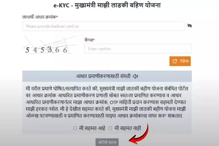 ऐप में लॉगिन करें, 'माझी लाडकी बहीण योजना' सेक्शन पर क्लिक करें और वहां दिए गए eKYC बटन का पालन करें।