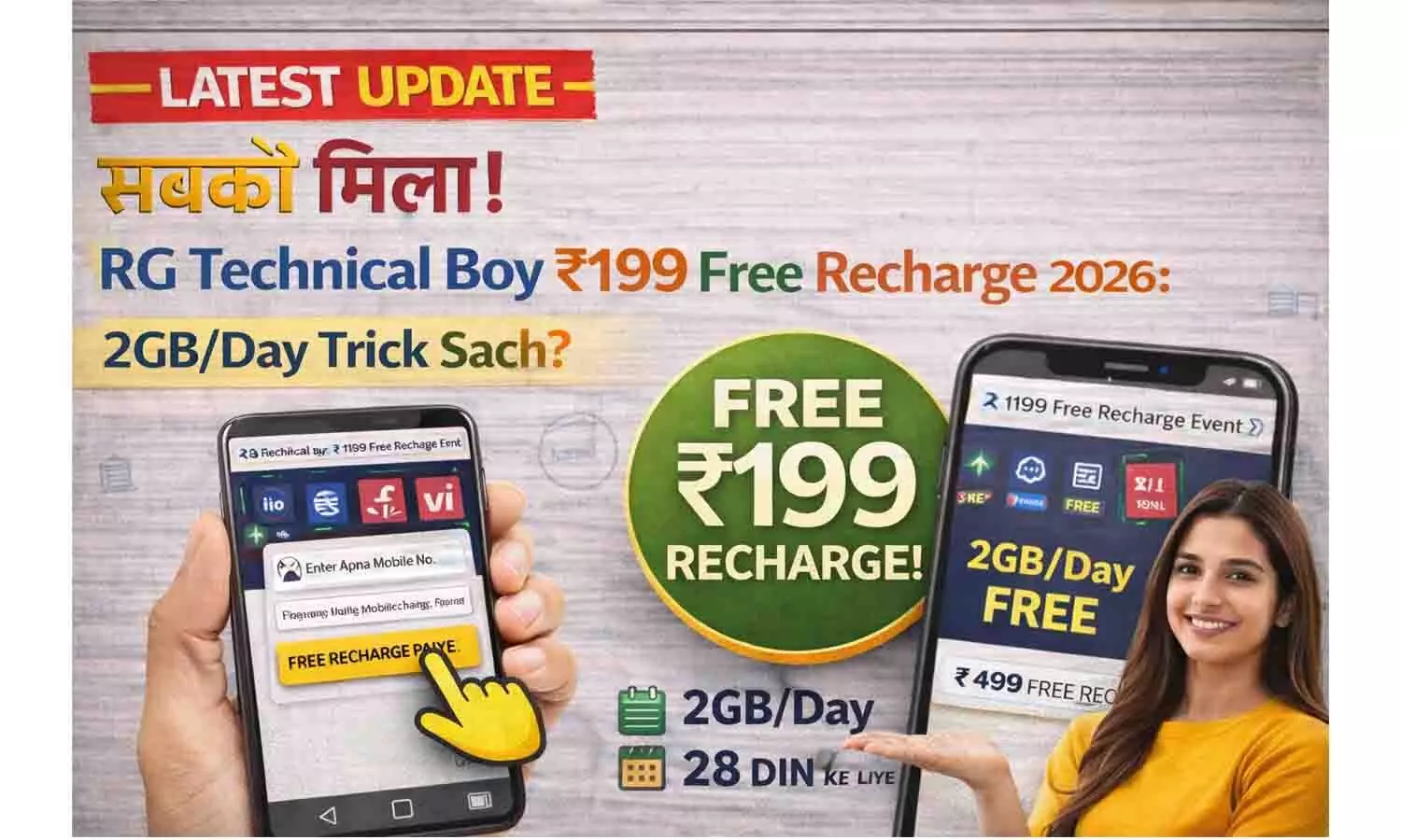 RG Technical Boy ₹199 Free Recharge 2026 की पूरी सच्चाई! 2GB डेटा और 28 दिनों की वैधता कैसे मिलेगी? अभी देखें यह वर्किंग ट्रिक और लूट लें अपना फ्री रिचार्ज प्लान।
