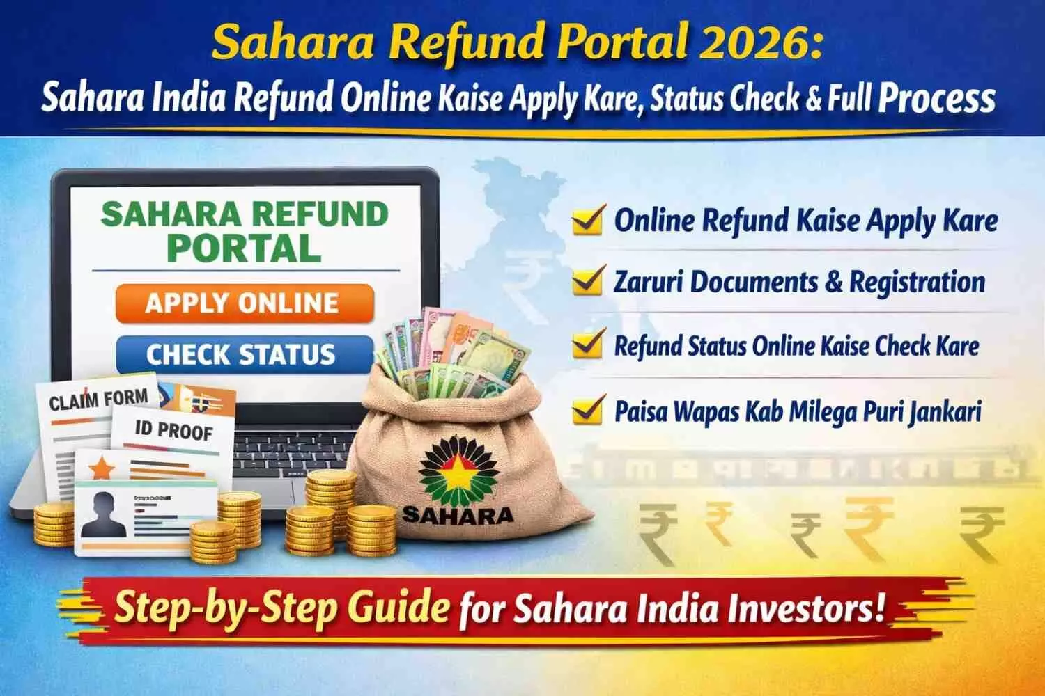 Sahara Refund Portal 2026 पर घर बैठे करें ऑनलाइन आवेदन! जानें पैसा वापस लेने का पूरा तरीका, जरूरी दस्तावेज और Refund Status चेक करने की आसान प्रक्रिया।