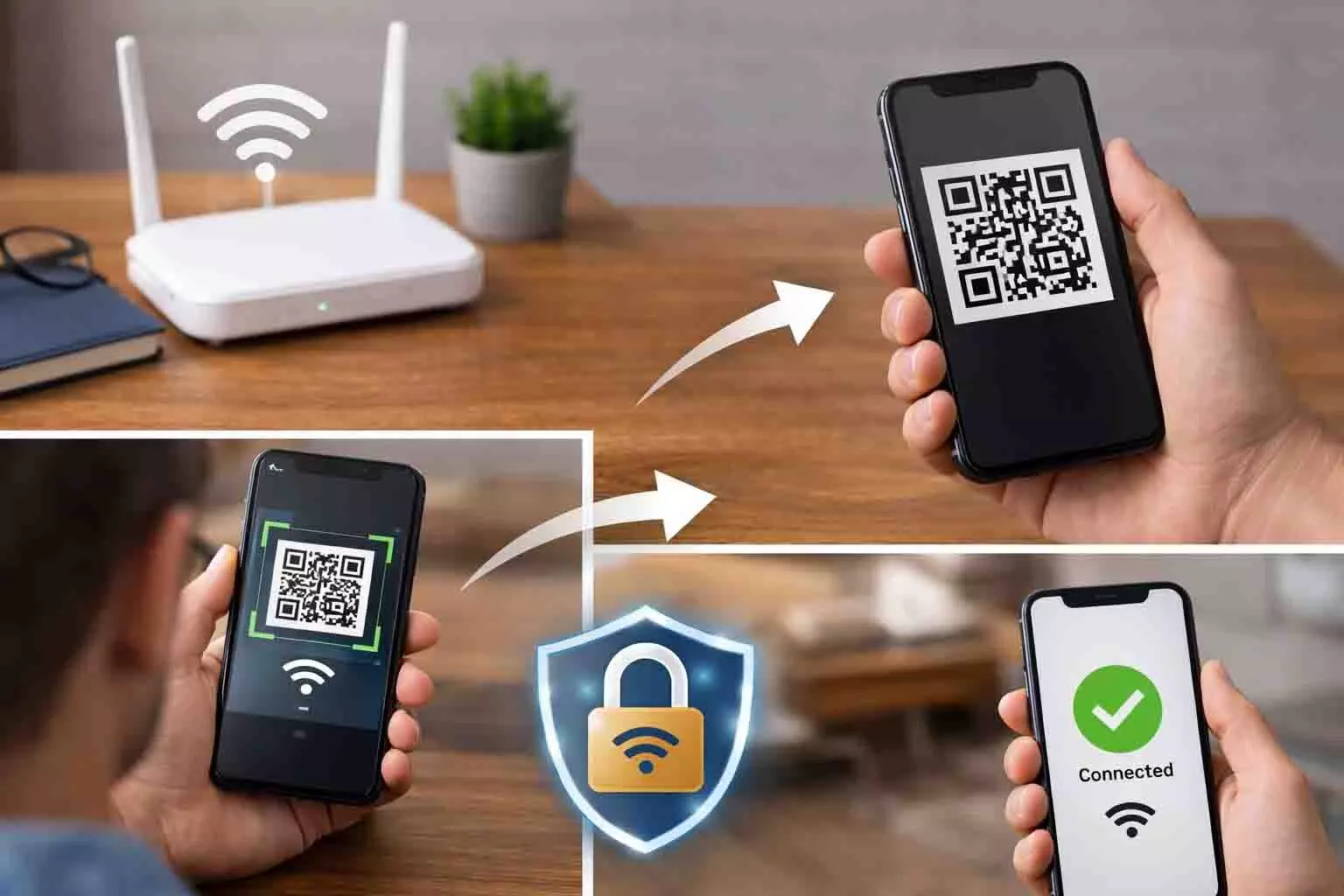 10. QR code scan karke WiFi connect karne ka pura process kya hai?