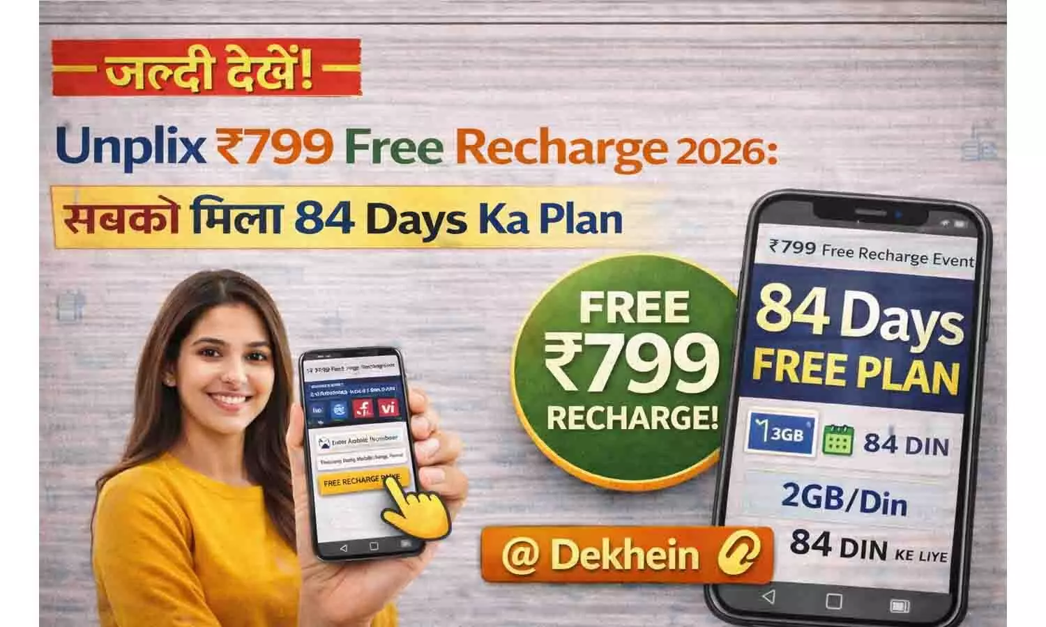 जल्दी देखें! Unplix ₹799 Free Recharge 2026: सबको मिला 84 Days का प्लान