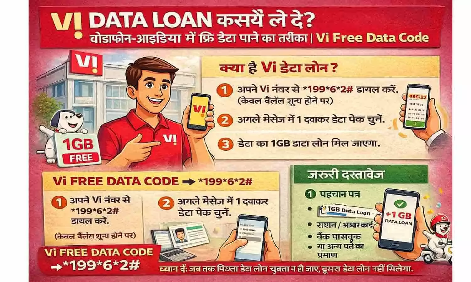 Vi Data Loan नंबर और कोड की पूरी जानकारी! क्या आपका डेटा खत्म हो गया है? जानिए Vi Me Data Loan Kaise Le, जरूरी USSD कोड और फ्री डेटा ऑफर का लाभ उठाने का सबसे आसान तरीका।
