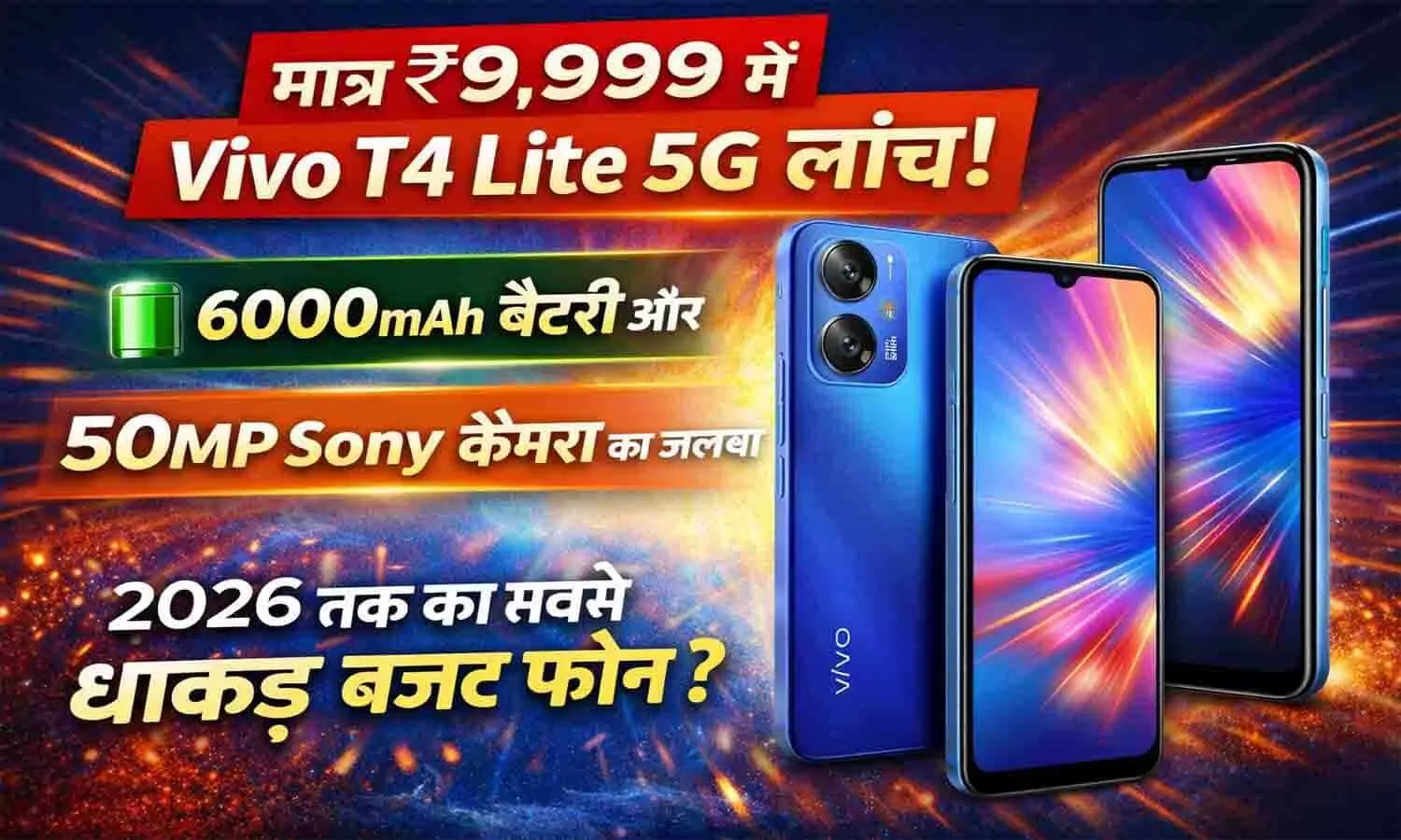 मात्र ₹9,999 में Vivo T4 Lite 5G लॉन्च! 6000mAh बैटरी और 50MP Sony कैमरा का जलवा, 2026 तक का सबसे धाकड़ बजट फोन?