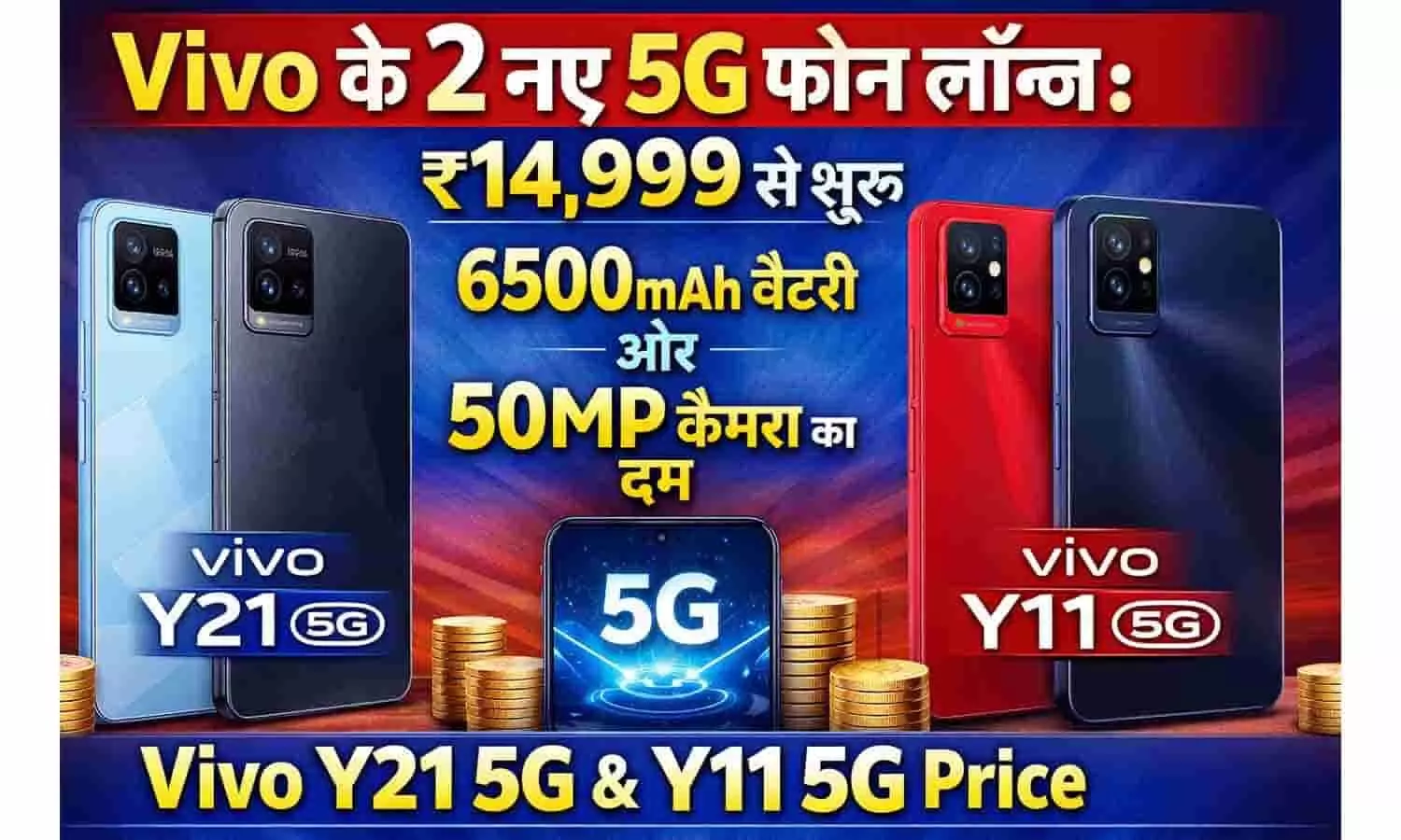 Vivo Y21 5G and Vivo Y11 5G Launch: चाइनीज टेक दिग्गज Vivo ने भारतीय स्मार्टफोन बाजार में अपनी पकड़ मजबूत करने के लिए Y-Series के दो नए किफायती 5G स्मार्टफोन लॉन्च कर दिए हैं। ये फोन विशेष रूप से उन यूजर्स के लिए डिजाइन किए गए हैं जो कम कीमत में दमदार बैटरी और आधुनिक 5G कनेक्टिविटी चाहते हैं। Vivo Y21 5G और Vivo Y11 5G दोनों ही डिवाइस 6500mAh की विशाल बैटरी के साथ आते हैं, जो इस सेगमेंट में एक नया बेंचमार्क स्थापित करता है। इसके अलावा, कंपनी ने इनमें मिलिट्री ग्रेड शॉक रेजिस्टेंस और IP65 रेटिंग जैसे फीचर्स देकर इनकी मजबूती पर भी काफी ध्यान दिया है।