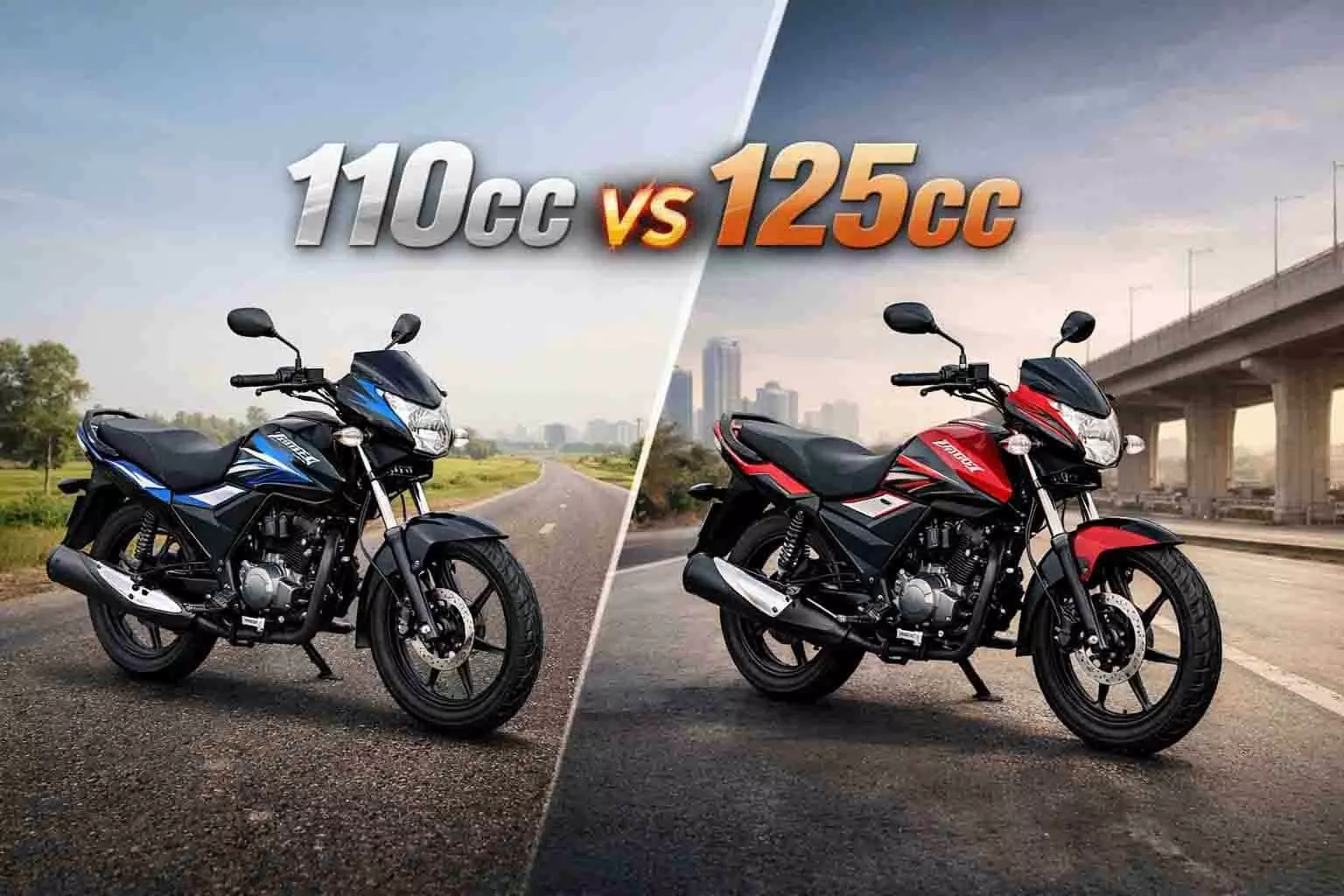 मुख्य अंतर ताकत और माइलेज का है। 110cc बाइक्स माइलेज और कम रखरखाव के लिए जानी जाती हैं, जबकि 125cc बाइक्स में थोड़ी ज्यादा पावर, बेहतर पिकअप और अतिरिक्त फीचर्स जैसे 5वां गियर या डिस्क ब्रेक मिलते हैं। 110cc शहर के लिए और 125cc थोड़े लंबे या मिक्स सफर के लिए बेहतर है।