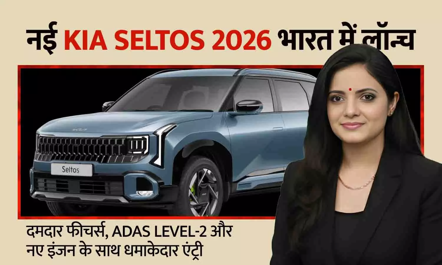 किआ मोटर्स इंडिया ने भारतीय मार्केट में अपनी लोकप्रिय SUV का नया अवतार पेश किया है। कंपनी ने नई जनरेशन Kia Seltos 2026 को अपडेटेड डिजाइन, प्रीमियम इंटीरियर और एडवांस सेफ्टी फीचर्स के साथ लॉन्च किया है। एक्स-शोरूम कीमत 10.99 लाख रुपए से शुरू होती है और टॉप मॉडल के लिए 19.99 लाख रुपए तक जाती है। इस लॉन्च के बाद कॉम्पैक्ट SUV सेगमेंट में प्रतिस्पर्धा और तेज हो गई है।