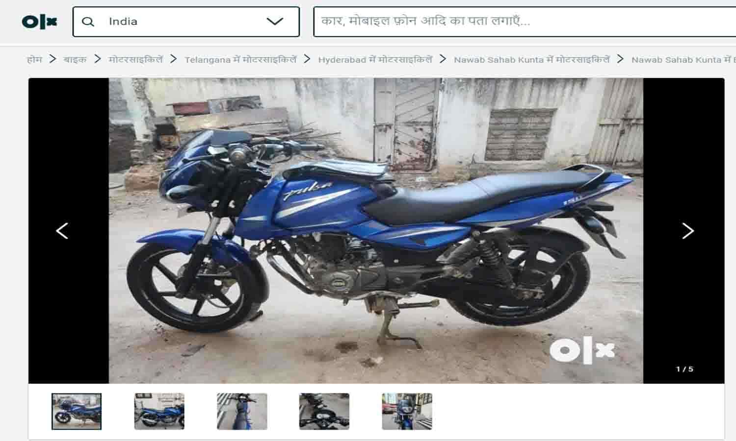 बजाज पल्सर (Bajaj Pulser) का 2018 मॉडल OLX पर ₹ 60,000 में बिक रहा है ! इस मॉडल ने 400,000 km की दूरी तय की है ! वहीं, 2018 मॉडल 60,000 रुपये में बिक रहा है ! यह मॉडल 60,000 किलोमीटर से अधिक चला है .