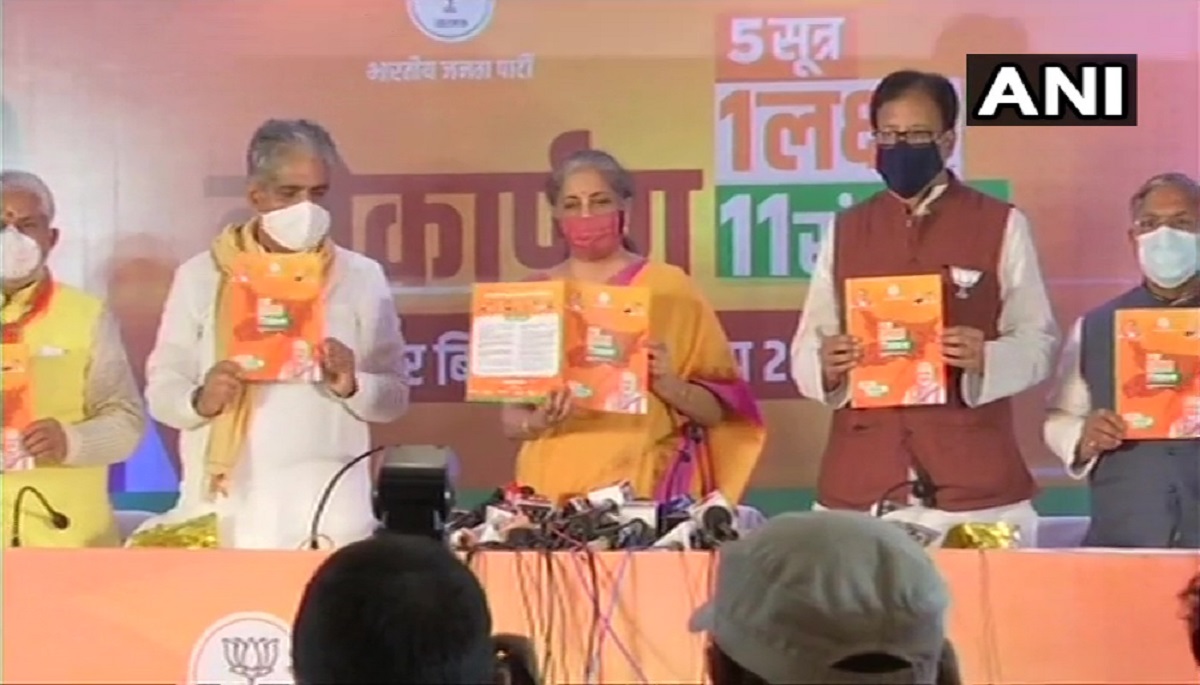 पटना : भाजपा ने आज बिहार चुनाव के लिए अपना चुनावी घोषणा पत्र जारी किया जिसमें राज्य में मुफ्त covid टीका और 19 लाख नौकरियों का वादा किया गया।