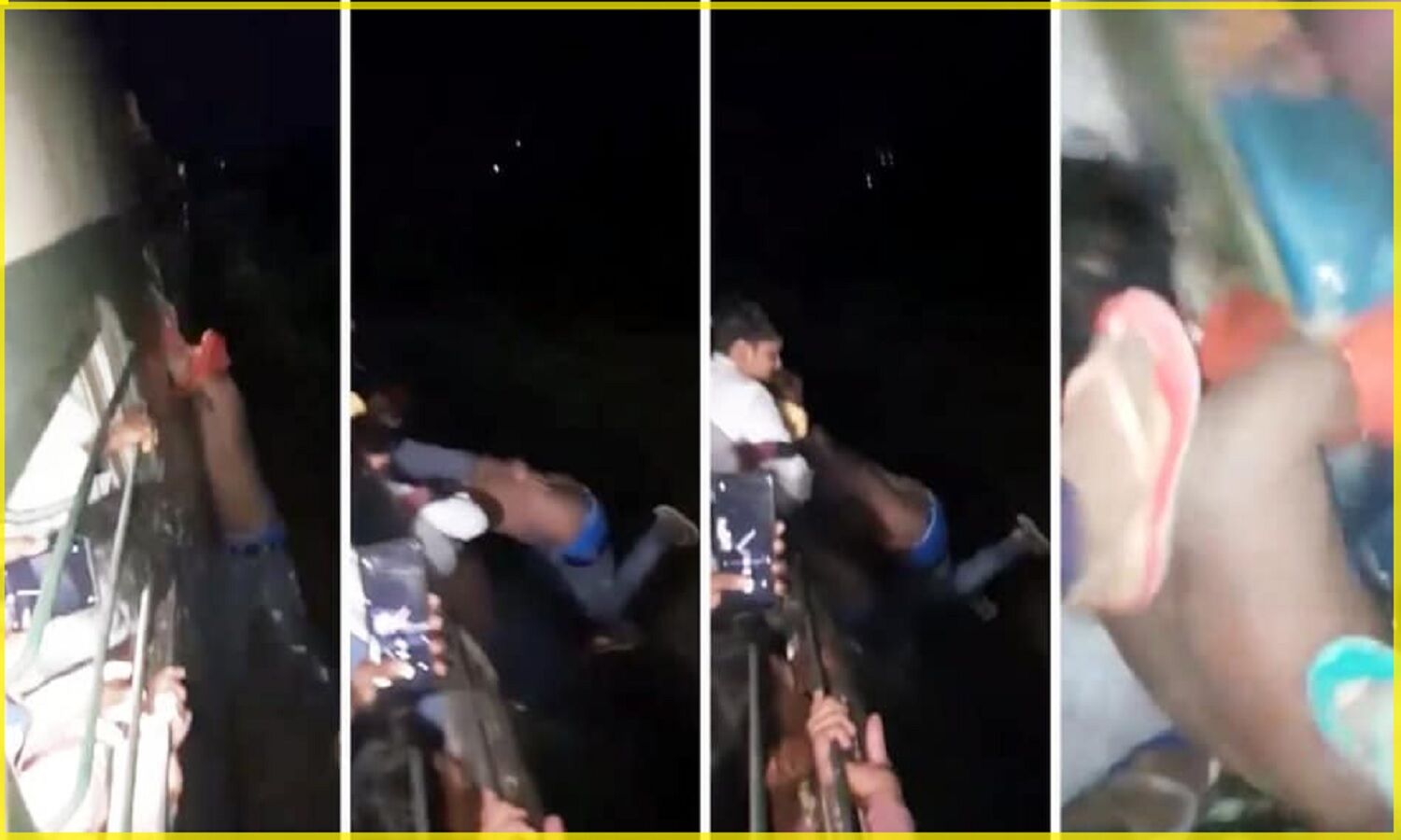 While stealing mobile from train in Bhagalpur, Bihar, people caught the thief and took him far away by hanging him from the train gate.#भागलपुर #Mamlekha #kaustuva pic.twitter.com/s5mbd8mcXZ