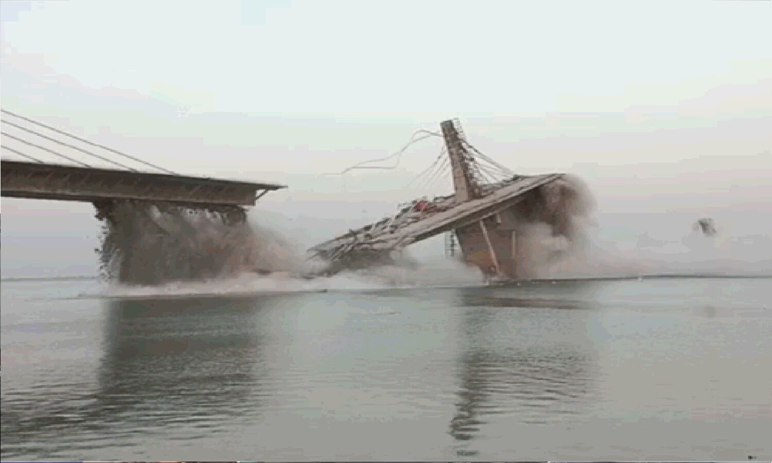 Bridge Collapse in Bihar's Khagaria Ganga River Video: बिहार के खगड़िया में रविवार 4 जून को को गंगा नदी पर बन रहा सुपर स्ट्रक्चर पुल गिर गया। अगुवानी- सुल्तानगंज पुल गंगा नदी में समा गया (Aguwani-Sultanganj bridge drowned in river Ganga). लोग ब्रिज गिरने का वीडियो बनाते रहे जो अब सोशल मीडिया में वायरल हो गया है.