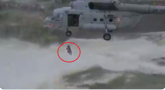 बाढ़ के कारण 12 घंटो से फसे आदमी को भारतीय वायु सेना ने बचाया