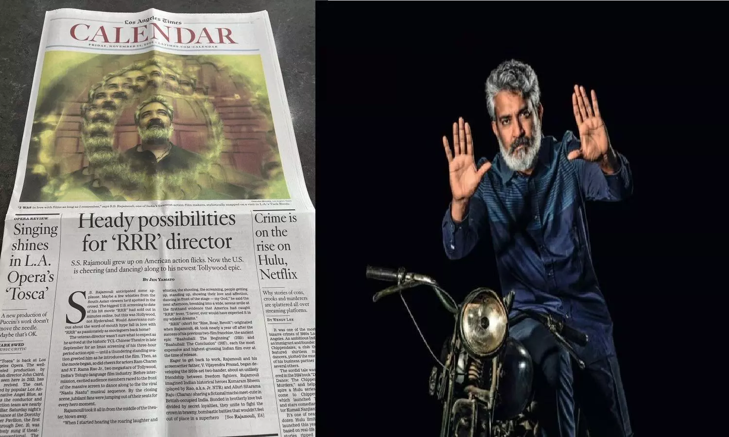 मशहूर अंग्रेजी अखबर LA Times के फ्रंट पेज में राजामौली की फोटो लगी है और उनके लिए स्पेशल आर्टिकल लिखा गया है. 25 नवंबर के अख़बार में राजामौली की बड़ी फोटो लगी थी. जिसमे शीर्षक था 'Heady Possibilities For RRR Director' यह खबर RRR के ट्विटर हैंडलर से शेयर की गई है