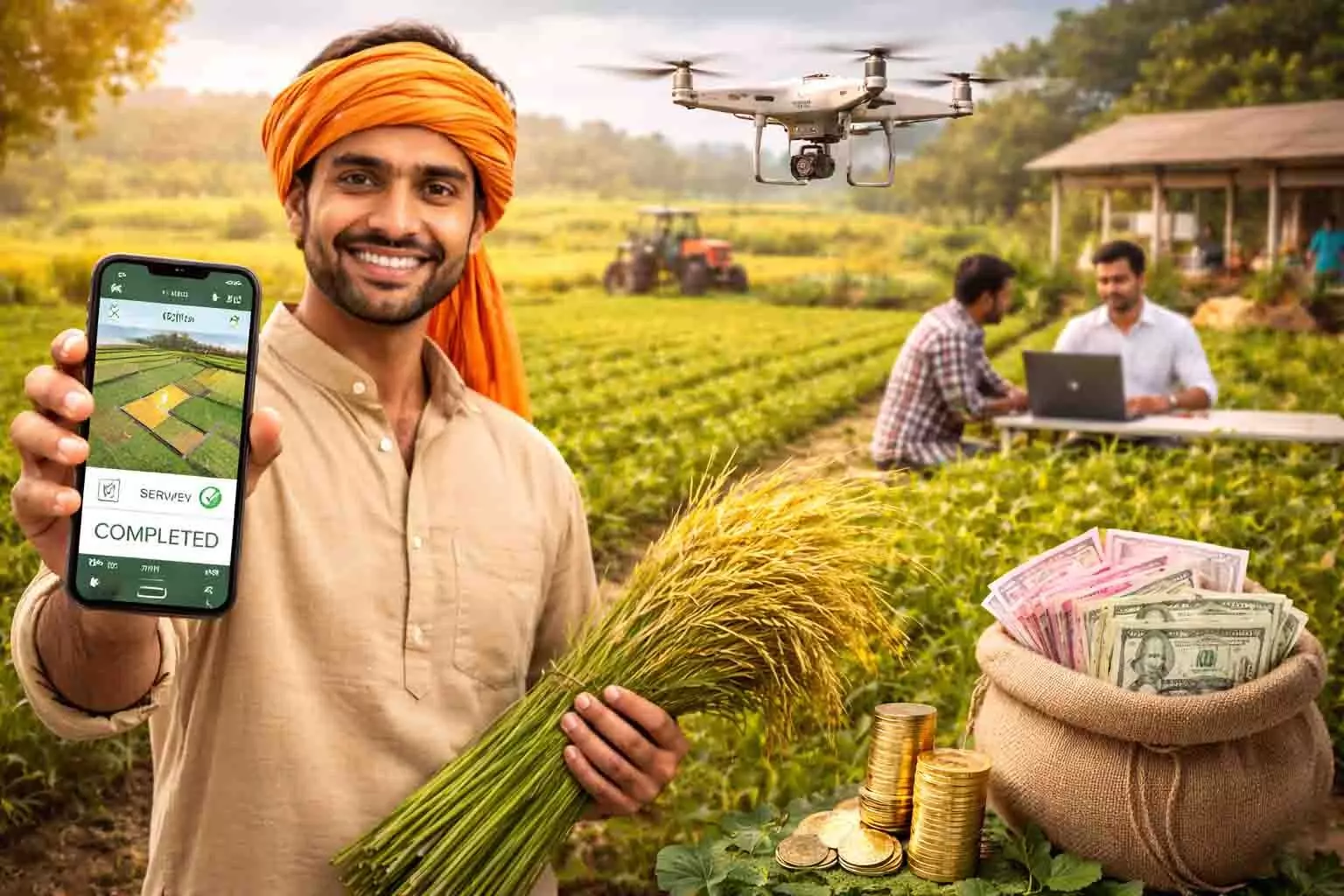 भारत सरकार ने डिजिटल इंडिया मिशन के तहत खेती-किसानी को आधुनिक बनाने के लिए 2026 में एक ऐतिहासिक कदम उठाया है। अब किसानों को अपने खेत के सर्वे के लिए लेखपाल या पटवारी के चक्कर नहीं काटने होंगे। रबी सीजन 2026 से पंजाब, हरियाणा, उत्तर प्रदेश और राजस्थान समेत कई राज्यों में "डिजिटल फसल सर्वे" (Digital Crop Survey) प्रणाली को पूरी तरह अनिवार्य कर दिया गया है।