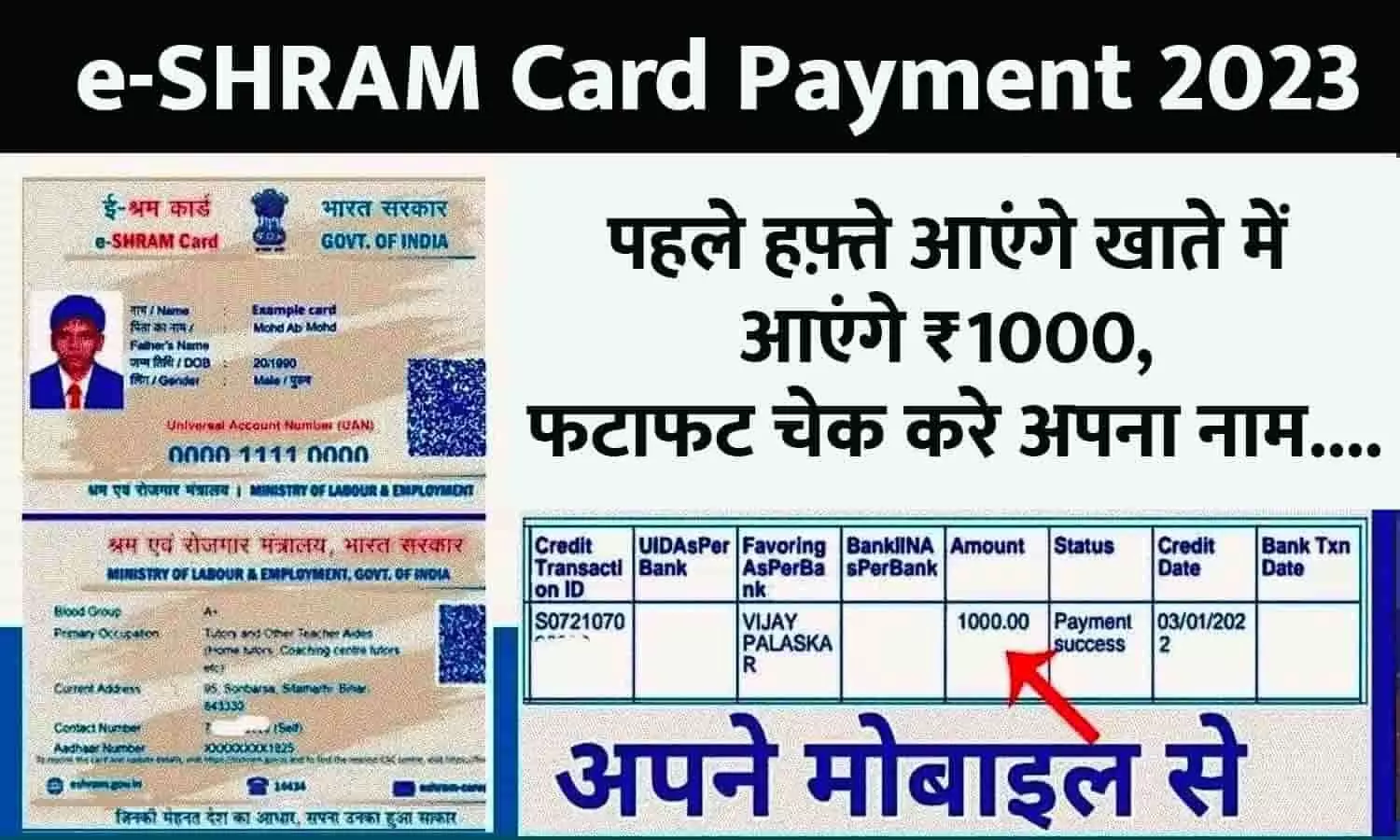 e-SHRAM Card Payment 2023: पहले हफ़्ते आएंगे खाते में आएंगे ₹1000, फटाफट चेक करे अपना नाम....