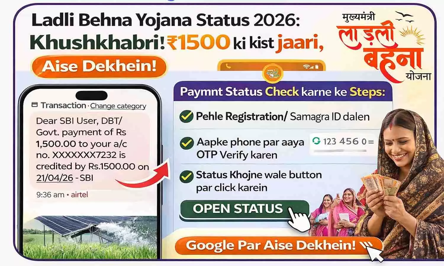 Ladli Behna Yojana Status 2026: खुशखबरी! ₹1500 की किस्त जारी, ऐसे देखें