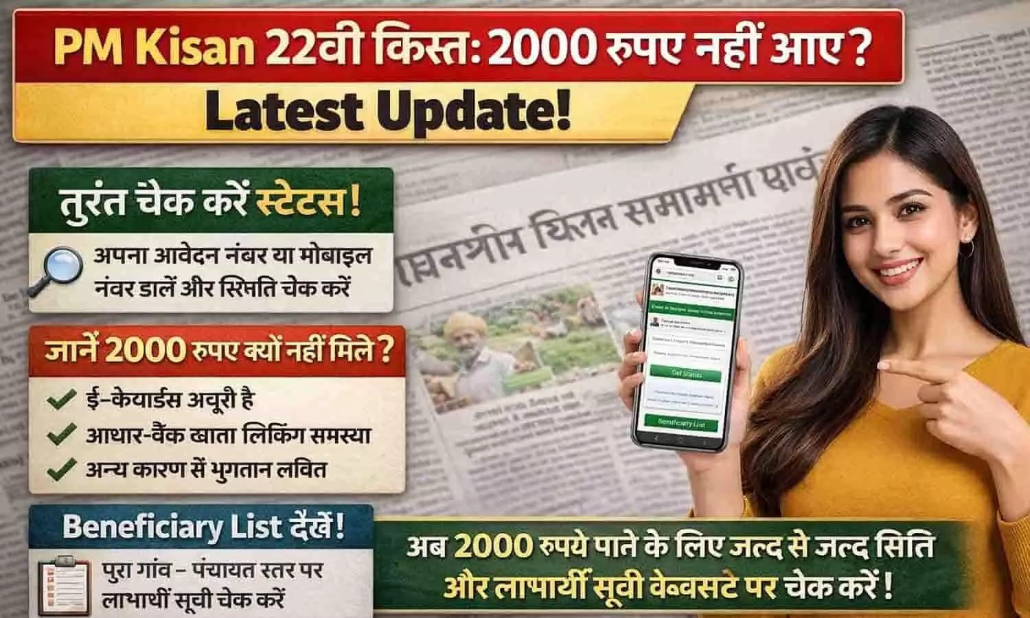 PM Kisan 22वीं किस्त 2026: खाते में 2000 रुपए नहीं आए? तुरंत चेक करें स्टेटस, Beneficiary List और जरूरी अपडेट