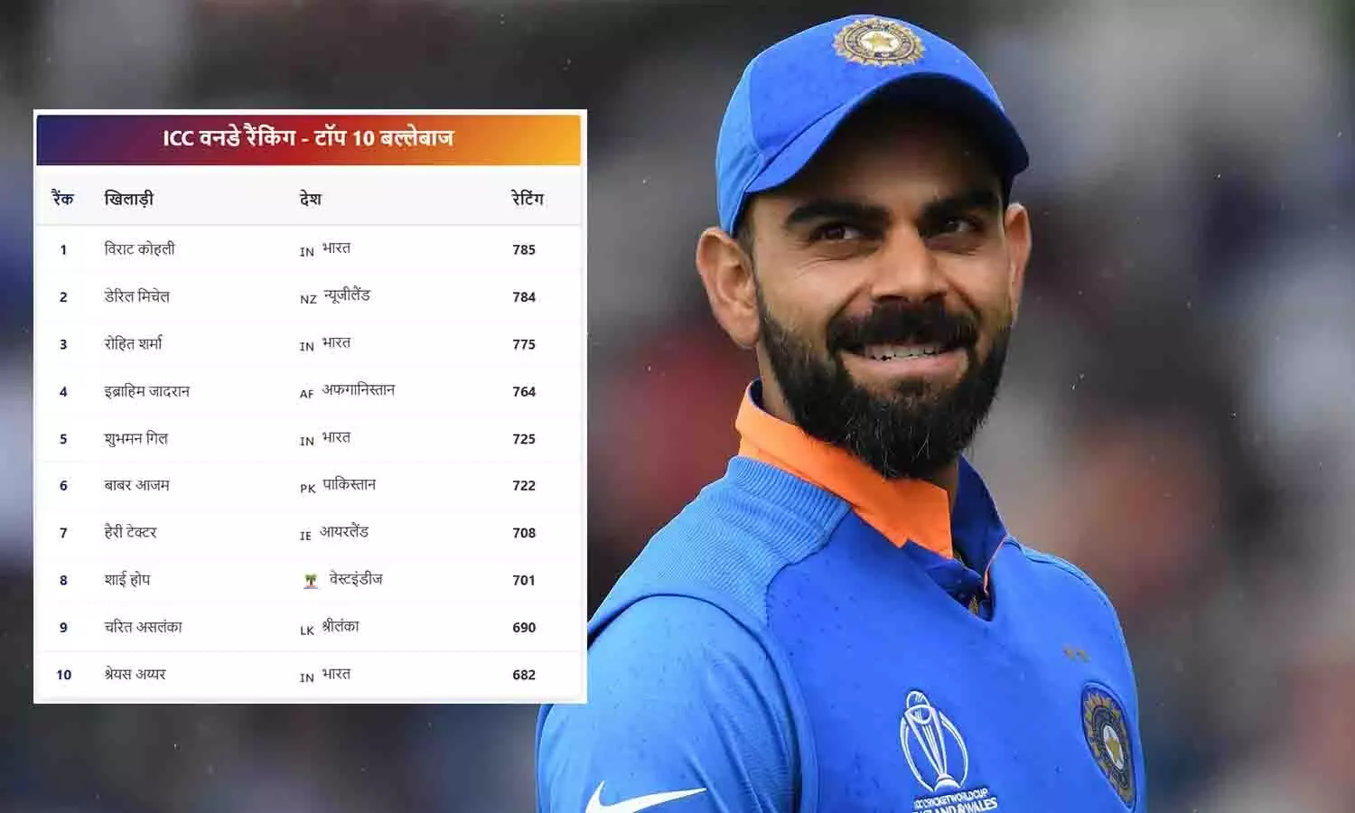 दिलचस्प बात यह है कि पहले और दूसरे नंबर के बल्लेबाज के बीच केवल एक रेटिंग पॉइंट का अंतर है। यानी विराट और मिचेल के बीच मुकाबला बेहद करीबी बना हुआ है।