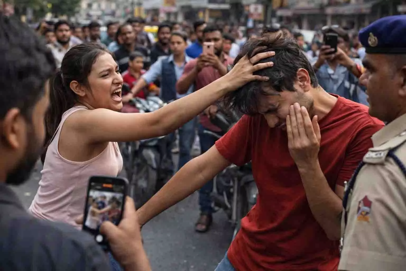 गर्लफ्रेंड का रिएक्शन बेहद आक्रामक था। उसने तुरंत Girlfriend Angry Reaction देते हुए शारीरिक हमला किया और चिल्लाकर अपना दर्द व्यक्त किया।