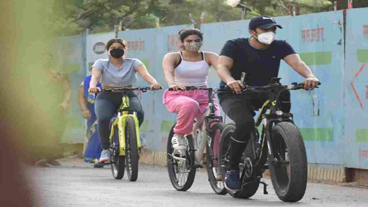 मुंबई : बॉलीवुड की मशहूर एक्ट्रेस जाह्नवी कपूर (Janhvi Kapoor) इन दिनों मुंबई की सड़को में सैर-सपाटा करते नजर आ रहे है. बता दे की जाह्नवी के साथ उनकी छोटी बहन खुशी कपूर (Khushi Kapoor) भी है. लॉकडाउन के अवसर पर मुंबई की सड़को में सन्नाटा छाया हुआ है. ऐसे में दोनों बहन फिटनेस का ध्यान रखते हुए साइकिलिंग कर रही है.