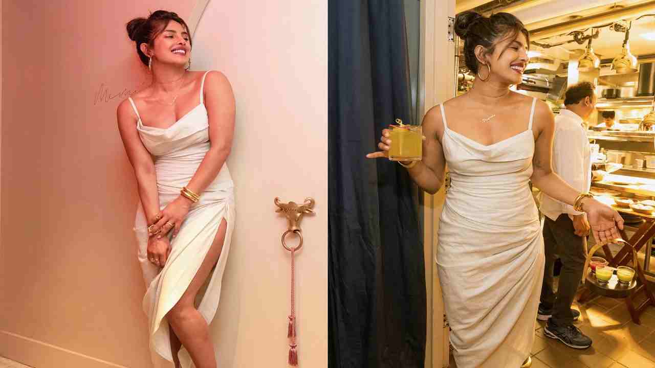 प्रियंका चौपड़ा जोनास प्रियंका चोपड़ा जोनस (Priyanka Chopra Jonas) सोना रेस्टोरेंट में मस्ती करते नजर आ रही है. बता दे की प्रियंका स्ट्रैप्स वाली हाई स्लिट व्हाइट सिल्क ड्रेस पहनी थी. इस ड्रेस के साथ उन्होंने गोल्डन हील्स कैरी किए और बालों का हाई बन बनाया.