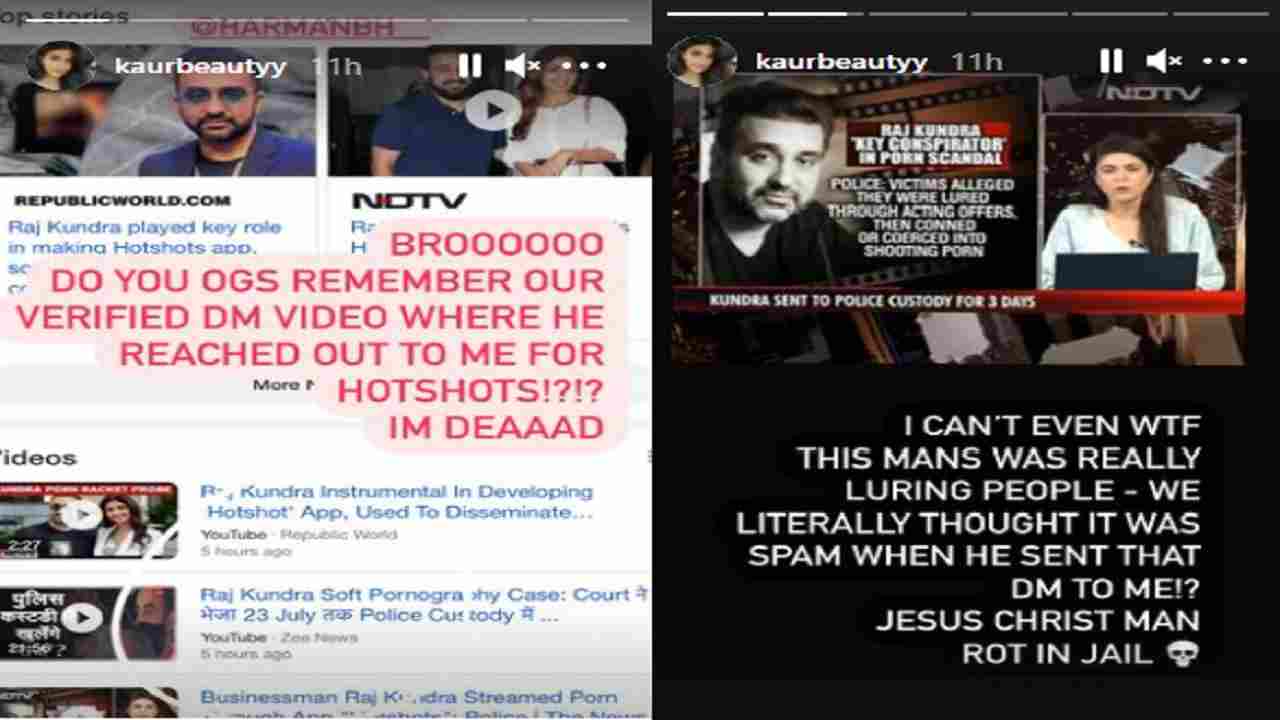 फेमस यूट्यूबर पुनीत कौर (Famous YouTuber Puneet Kaur) ने राज कुंद्रा पर आरोप लगाते हुए कहा की राज कुंद्रा ने उनसे अश्लील ऐप 'हॉटशाट्स' के वीडियो में काम करने के लिए मैसेज किया था. पहले मुझे लगा की ये फैक आईडी है. हो सकता है ये राज कुंद्रा की आईडी न हो. लेकिन बाद में पता चला की वो बेकार इंसान कोई और नहीं बल्कि राज कुंद्रा (Raj Kundra) है.