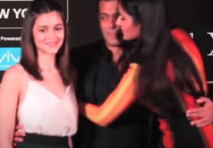 इस दौरान सलमान, आलिया एवं कैटरीना एकसाथ मंच में नजर आए। इस दौरान आलिया सलमान के करीब होकर फोटो खिंचवाना चाहती थी। लेकिन कैटरीना को सलमान से आलिया (Alia Bhatt) की नजदीकी रास नहीं आई और वह आलिया को सलमान से दूर करती हुई नजर आई।
