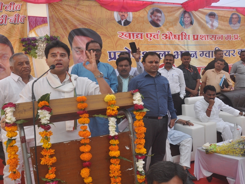 लोकसभा चुनाव में हार का सामना करने के बाद अंचल में सक्रिय हुए पूर्व सांसद ज्योतिरादित्य सिंधिया ने आज आरटीओ पहाड़ी के पास नई प्रस्तावित फूड लैबोरेटरी का भूमिपूजन किया। इस मौके पर उन्होंने अपनी सरकार पर एक बार फिर निशाना साधा। सिंधिया बोले- मैं कलेक्टर और मंत्री प्रद्युम्न सिंह तोमर से कहना चाहता हूं कि किसी भी मिलावटखोर को बख्शा न जाए। मैं सुन रहा हूं कि छापा पड़ने के बाद भी मिलावटखोरों को छोड़ा जा रहा है। स्वास्थ्य मंत्रीजी आप ऑर्डर निकालो, आपके पूछे बिना कोई केस क्लोज नहीं होगा।