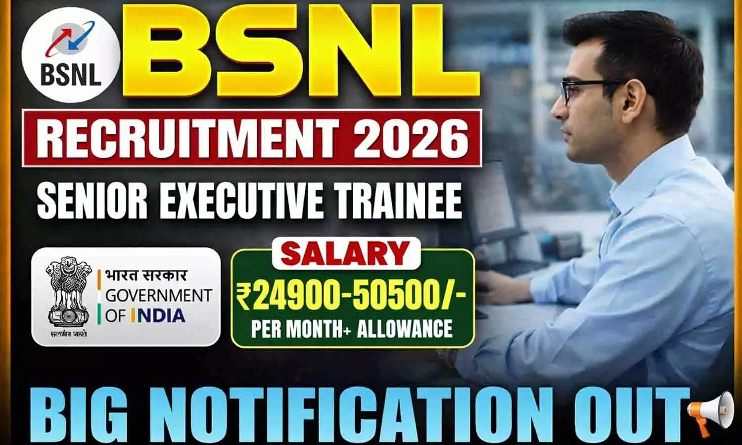 भारत संचार निगम लिमिटेड (BSNL) ने वर्ष 2026 के लिए सीनियर एग्जीक्यूटिव ट्रेनी (SET) के पदों पर भर्ती का आधिकारिक नोटिफिकेशन जारी कर दिया है। यह भर्ती विशेष रूप से उन युवाओं के लिए है जो एक सरकारी टेलीकॉम कंपनी में अधिकारी के रूप में काम करना चाहते हैं। 2026 की इस भर्ती प्रक्रिया में पारदर्शिता और आधुनिक डिजिटल तकनीक का उपयोग किया जा रहा है ताकि मेधावी उम्मीदवारों का चयन हो सके।