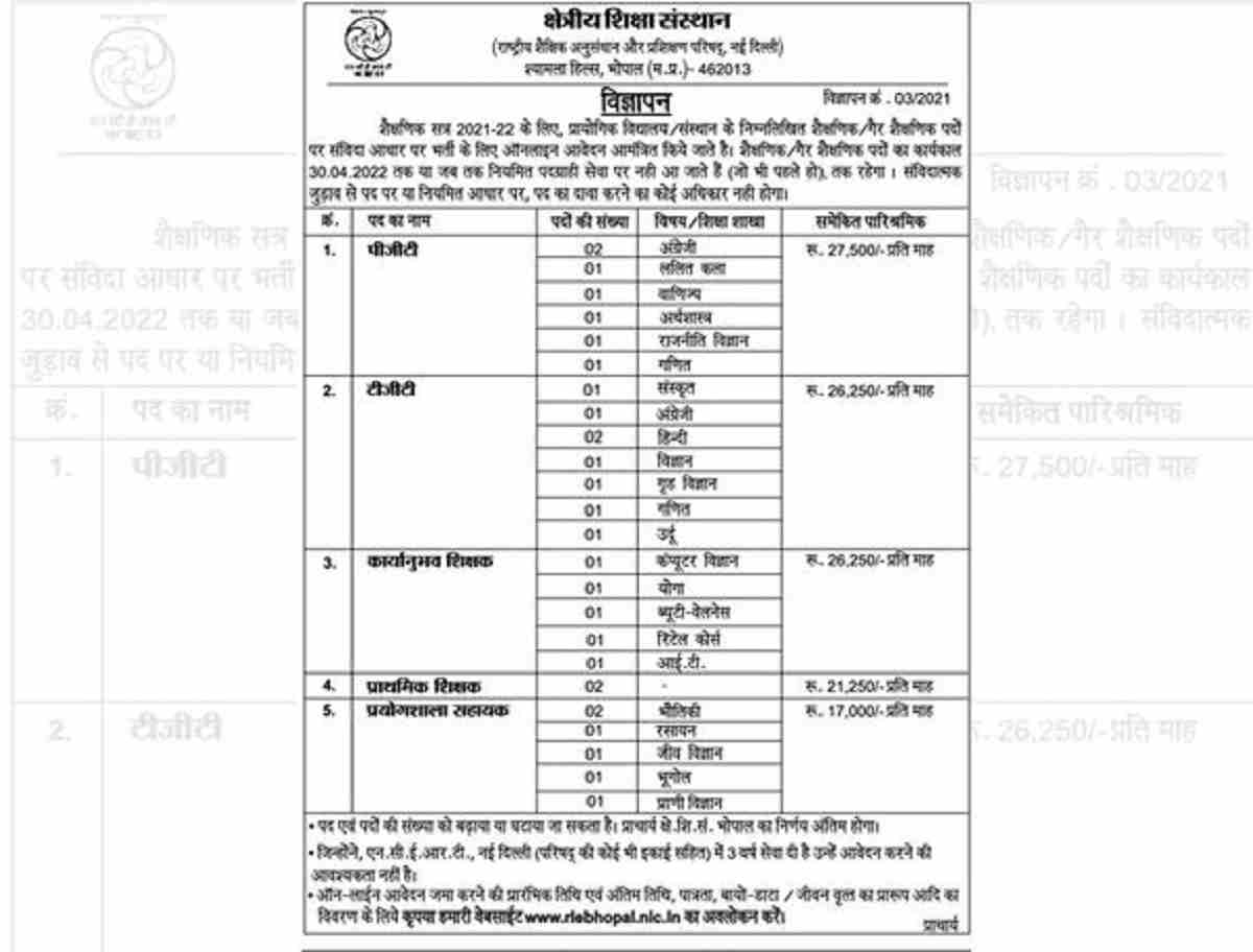 - पद एवं पदों की संख्या को बढ़ाया या घटाया जा सकता है. प्राचार्य क्षेत्रीय शिक्षण संस्थान भोपाल का निर्णय अंतिम होगा.