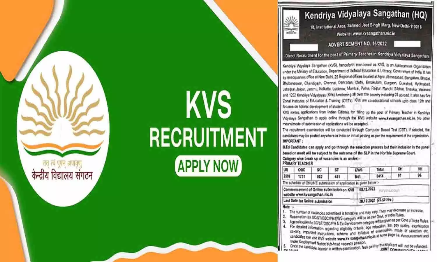 KV Recruitment 2022: केंद्रीय विद्यालय संगठन में निकली 13404 पदों पर भर्ती, 24 घंटो के अंदर करें आवेदन
