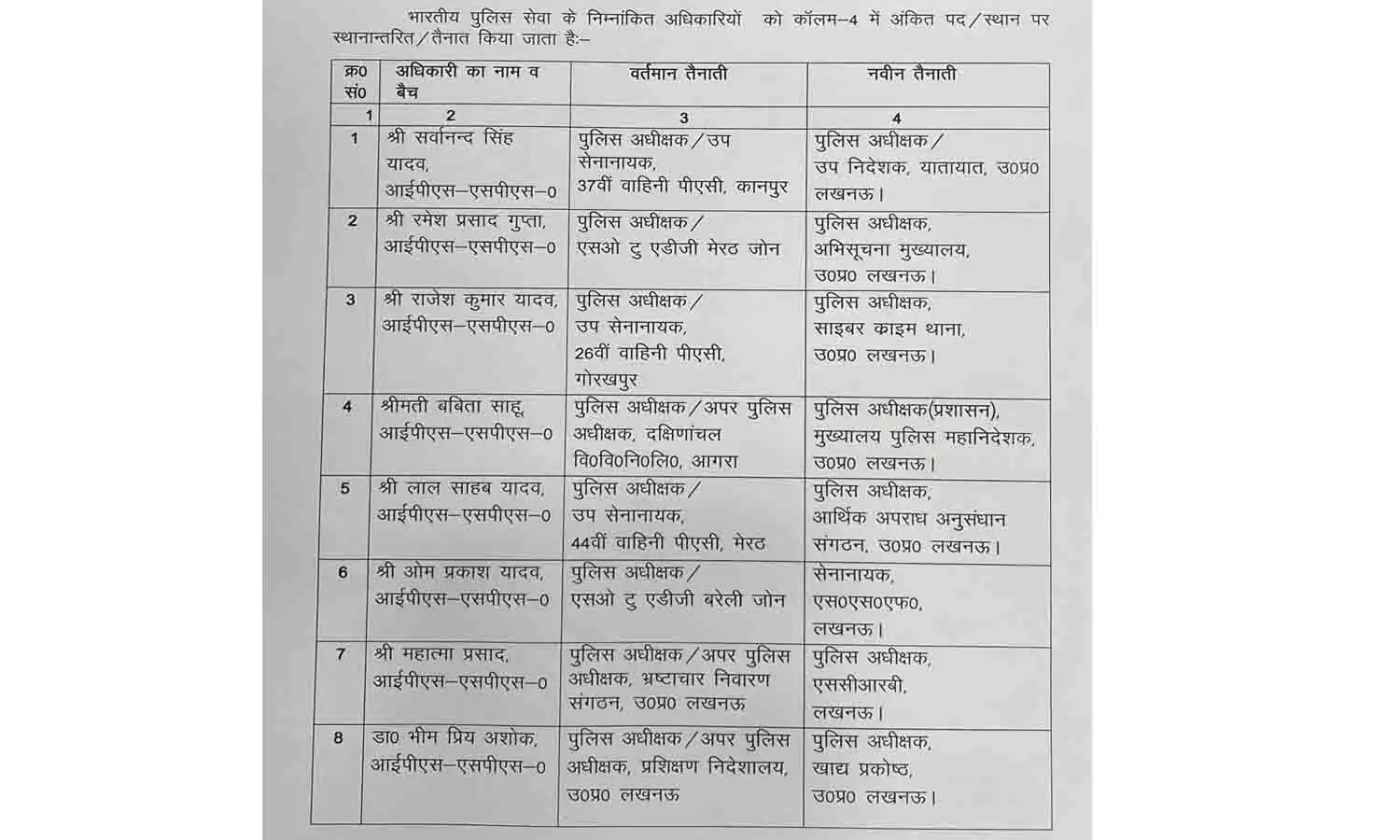 जानकारी के तहत जो तबादलें किए गये है उनमें ज्यादातर वे अधिकारी शामिल है, जिन्हे हाल ही में पीपीएस से आईपीएस में पदोन्नति किया गया है। ऐसे अधिकारियों की अब नवीन पदस्थापना की गई है।