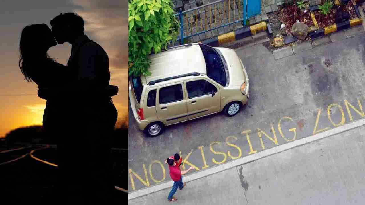 No Kissing Zone / कपल्स की अश्लीलता से परेशान सोसाइटी वालों ने सड़क पर लिखवाया 'नो किसिंग जोन'