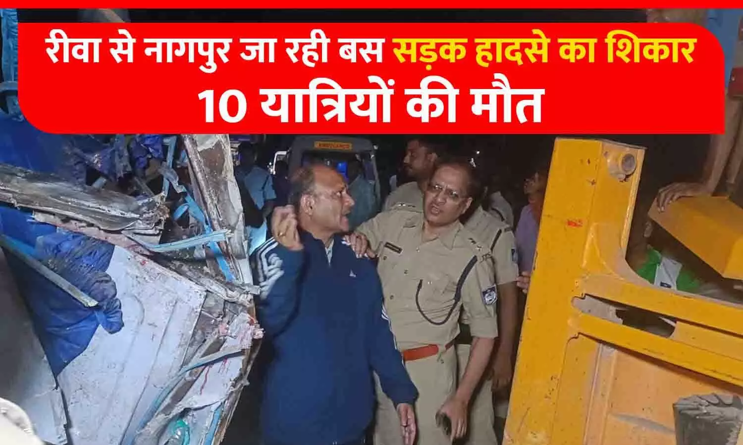 मध्य प्रदेश के मैहर जिले में शनिवार रात एक भीषण सड़क हादसा हुआ, जिसमें प्रयागराज से रीवा होते हुए नागपुर जा रही आभा ट्रेवल्स की यात्री बस खड़े ट्रक से टकरा गई। इस हादसे में 10 लोगों की मौत हो गई, जबकि 24 से अधिक लोग घायल हो गए। हादसा रात करीब 11 बजे हुआ जब बस प्रयागराज से नागपुर जा रही थी और यह घटना नेशनल हाईवे 30 पर नादन देहात पुलिस स्टेशन के पास हुई।