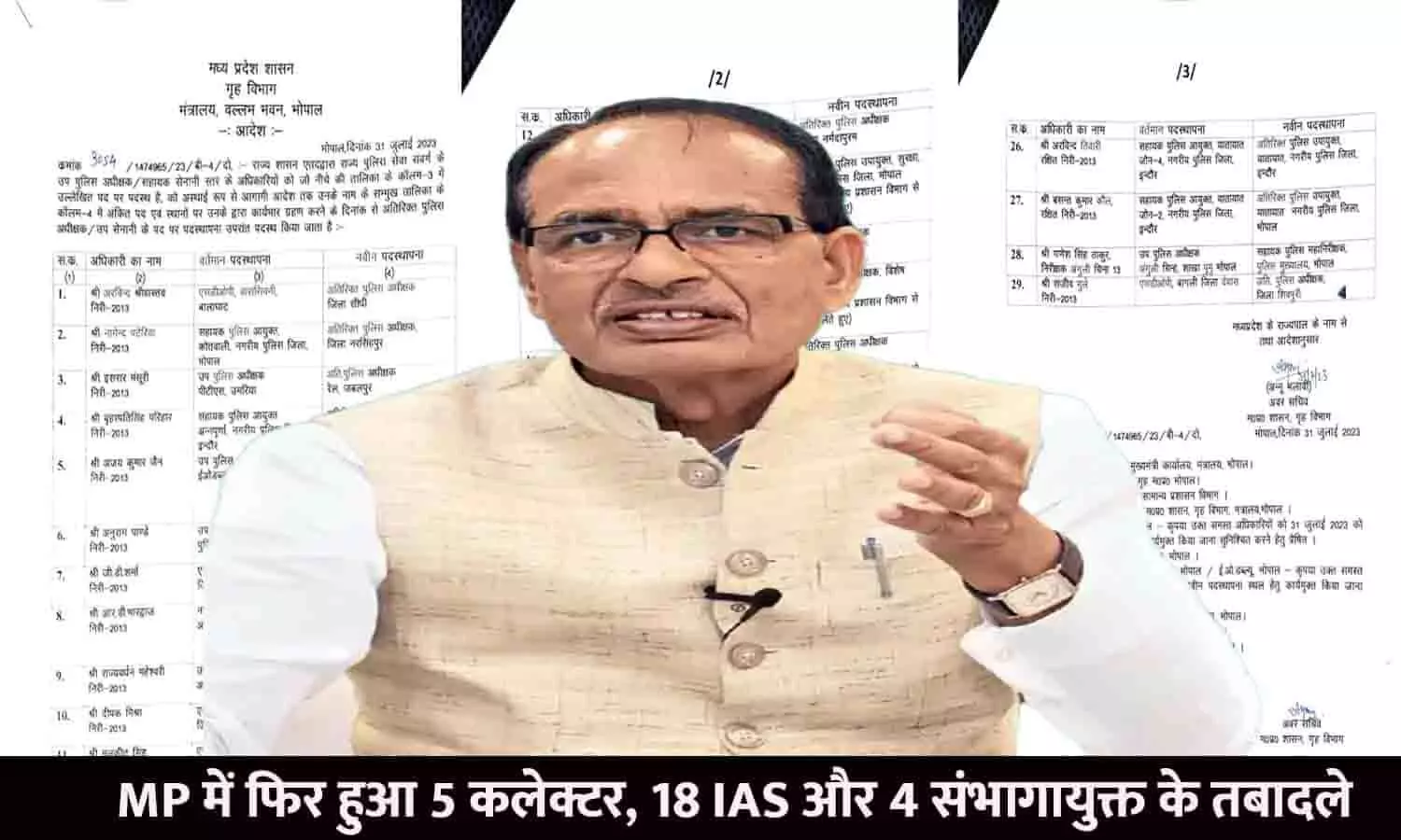 MP में फिर हुआ 5 कलेक्टर, 18 IAS और 4 संभागायुक्त के तबादले, देखे पूरी List