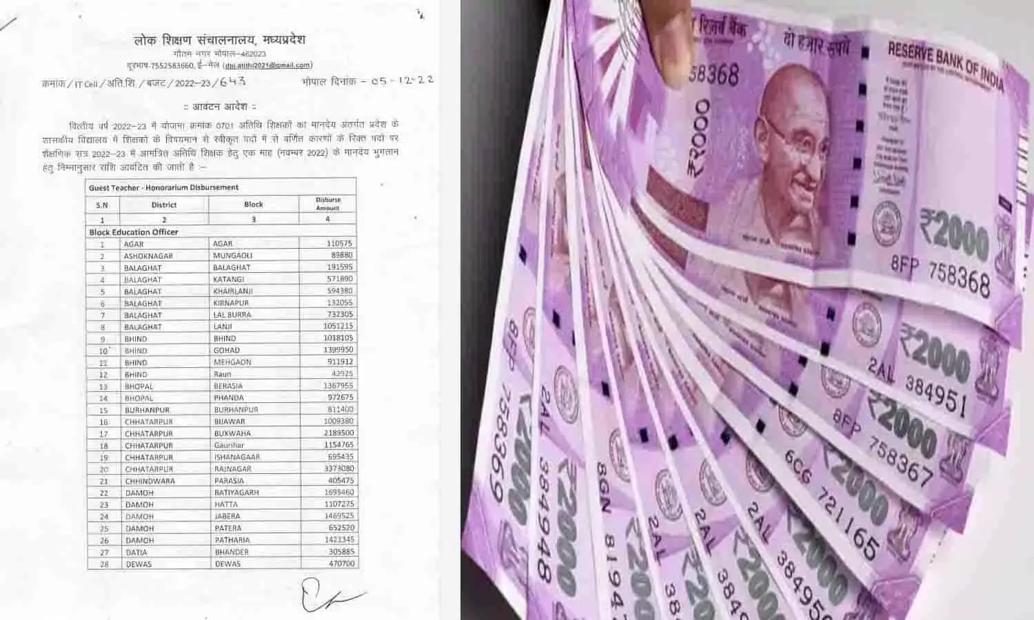 जानकारी के अनुसार जारी की गई राशि मध्य प्रदेश के रीवा, सागर, सीहोर, शाजापुर, सीधी, सिंगरौली, टीकामगढ, उज्जैन, विदिशा, रतलाम, गुना, राजगढ़, रायसेन, देवास, दतिया, पन्ना, नीमच, दमोह, नरसिंहपुर, छतरपुर, मुरैना, बुरहानपुर, मंदसौर, भोपाल, खंडवा, भिंड, कटनी, बालाघाट, जबलपुर, अशोक नगर, इंदौर, होशंगाबाद, हरदा और आगर जिला मे पदस्थ अतिथि शिक्षकों के मानदेय का भुगतान किया जाएगा।