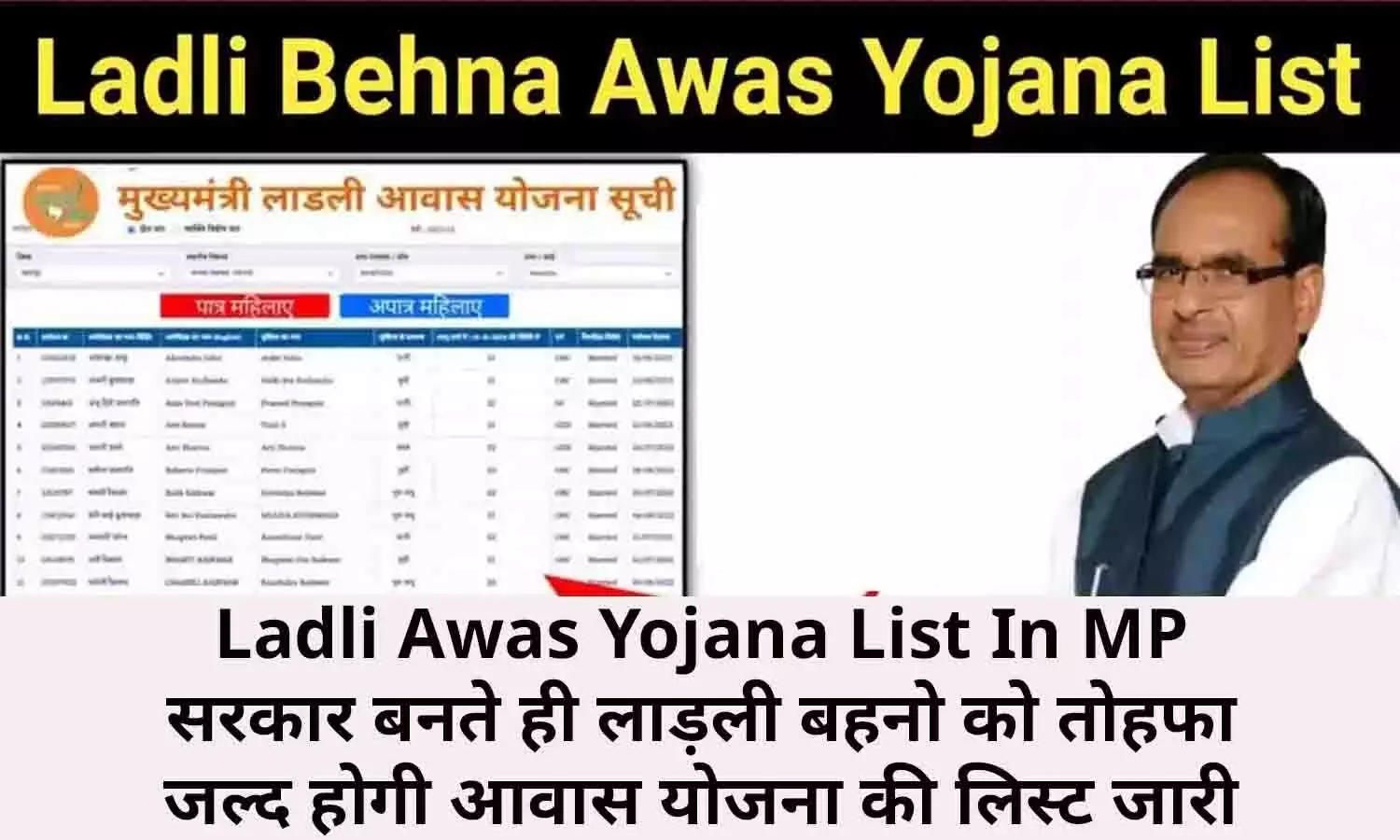 Ladli Awas Yojana List In MP, Ladli Awas Yojana List In Madhya Pradesh, MP Ladli Behna Awas Yojana List 2023: मध्य प्रदेश ( Madhya Pradesh ) सरकार के द्वारा लाड़ली बहना योजना की शुरुआत मार्च में की गई थी. इस योजना में हर महीने महिलाओ के अकाउंट में 1250 रूपए भेजे जा रहे है. भाजपा की सरकार बनते ही लाड़ली बहना योजना की 7 वी क़िस्त 10 दिसम्बर को महिलाओ के अकाउंट में भेजी जाएगी. Ladli Behna Yojana में पात्र महिलाओ को शिवराज सरकार के द्वारा फ्री आवास योजना का लाभ भी प्रदेश सरकार देने का ऐलान किया गया है. लाड़ली आवास योजना में फॉर्म भर चुकी महिलाओ के अकाउंट में पहली क़िस्त अकाउंट में भेजी जाएगी .एमपी लाडली बहना आवास योजना ( MP Ladli Behna Awas Yojana ) के लिए आवेदन किया है और आपका नाम सूची में आता है तो ऐसी स्थिति में आपको पक्का मकान बनाने के लिए धन का लाभ दिया जाएगा।
